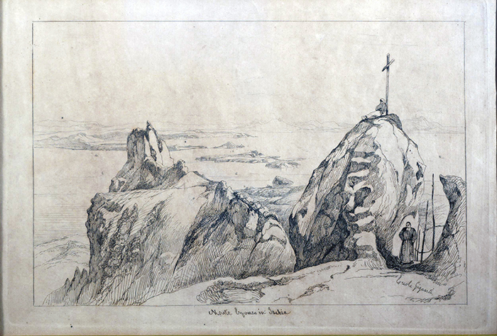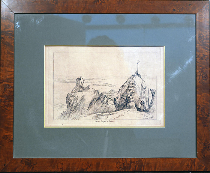 Gigante Ercole (Napoli 1815 - 1860) Monte Epomeo in Ischia china su carta, cm 23x33 firmato in basso a destra: Ercole Gigante