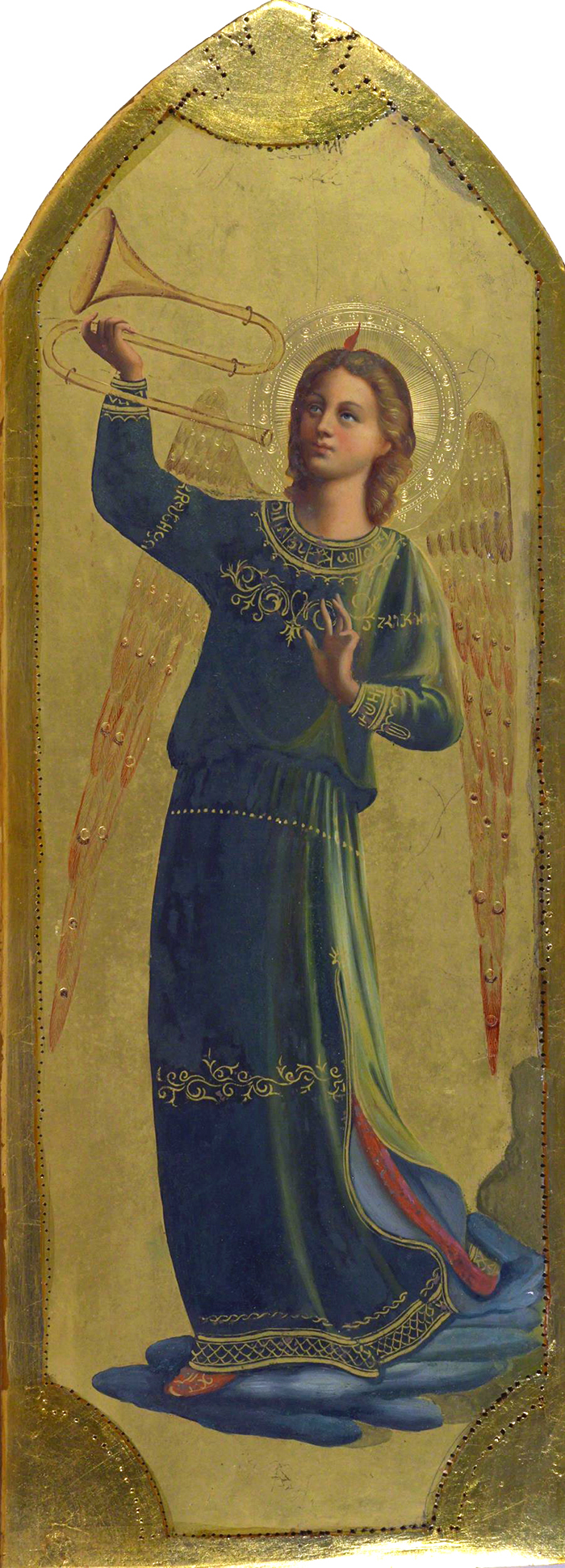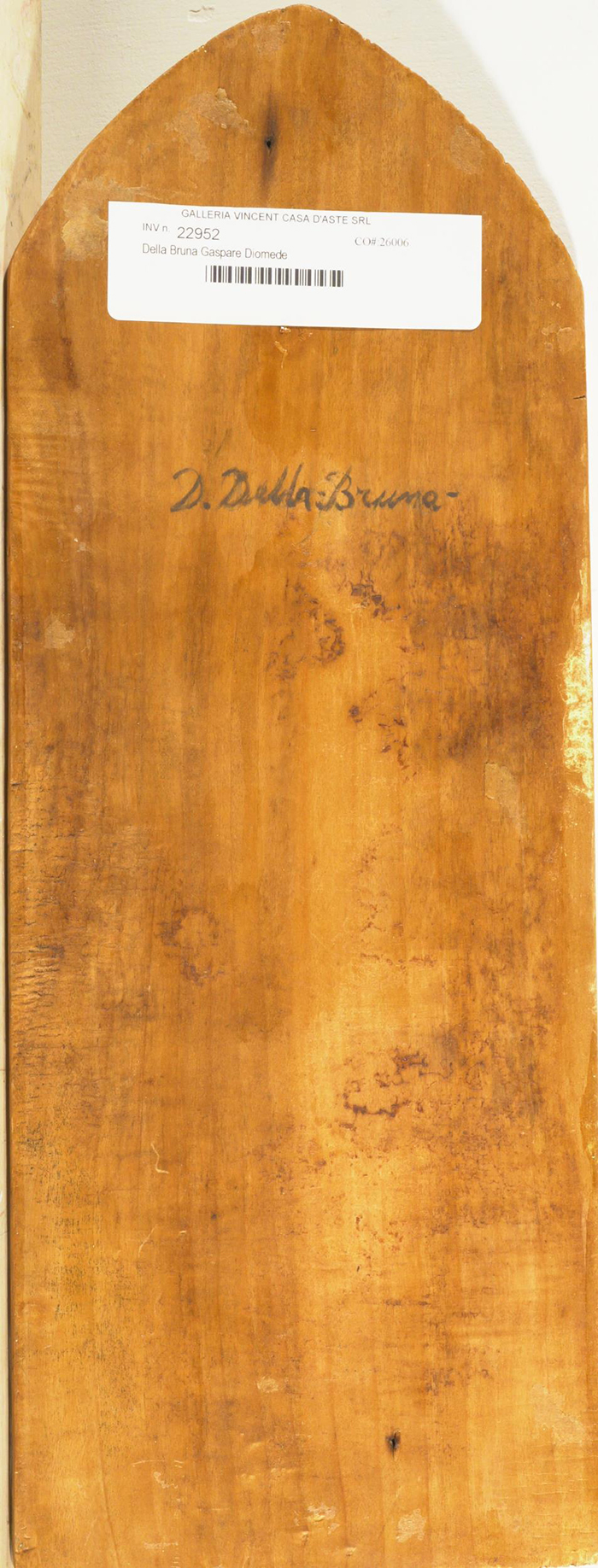 Della Bruna Gaspare Diomede (1839-1915) Angelo musicante olo su tavola, cm 42x16 a tergo firmato: D. Della Bruna