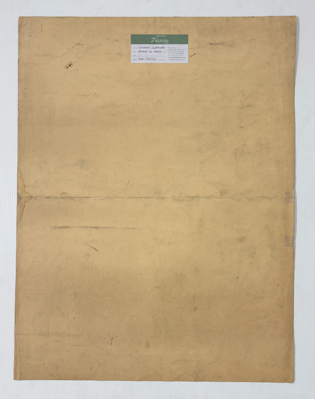 Etichetta della Galleria d'Arte Narciso (TO), con caratteristiche tecniche dell'opera e numero di repertorio, al retro