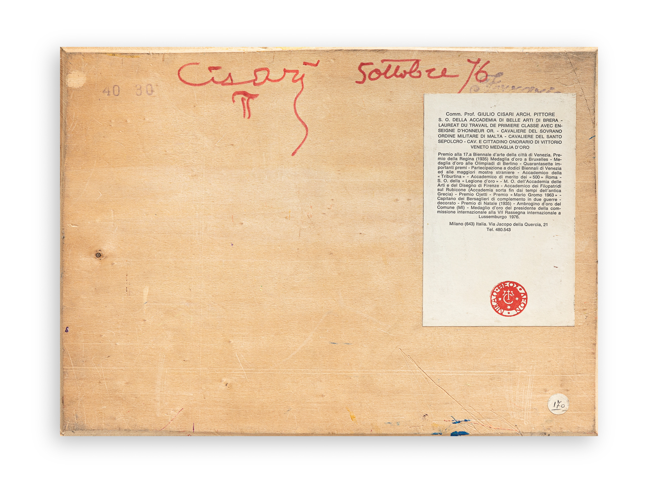 Etichetta dell'Artista al retro