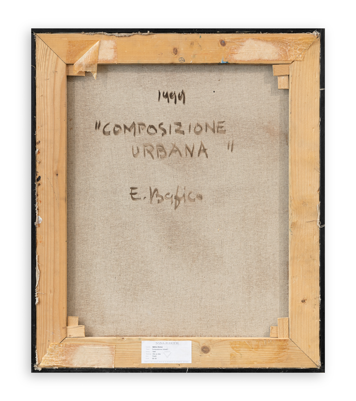 Etichetta della Galleria Valente Arte Contemporanea (SV) al retro