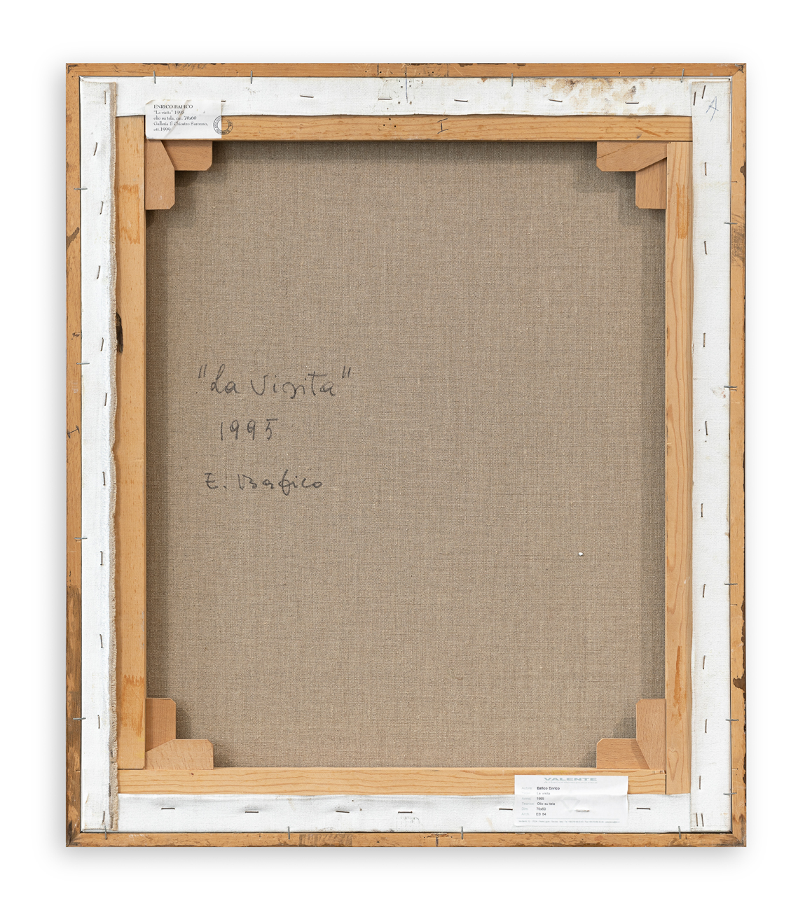 Etichetta della Galleria Valente Arte Contemporanea (SV) al retro