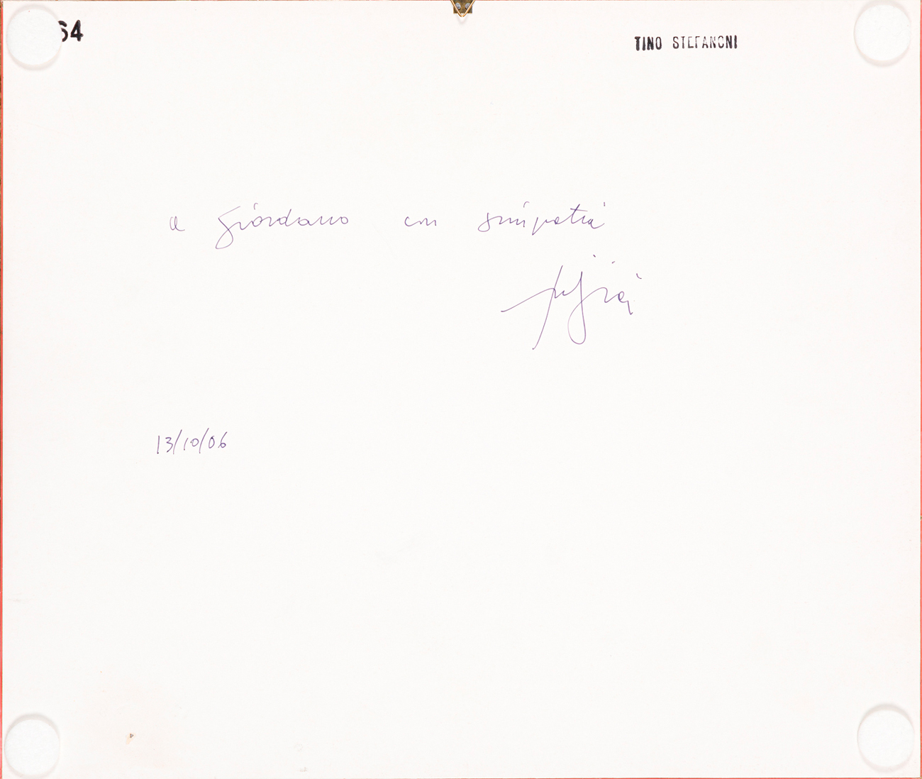 Firma, datazione, dedica ad personam e timbro dell'Artista al retro del cartone protettivo