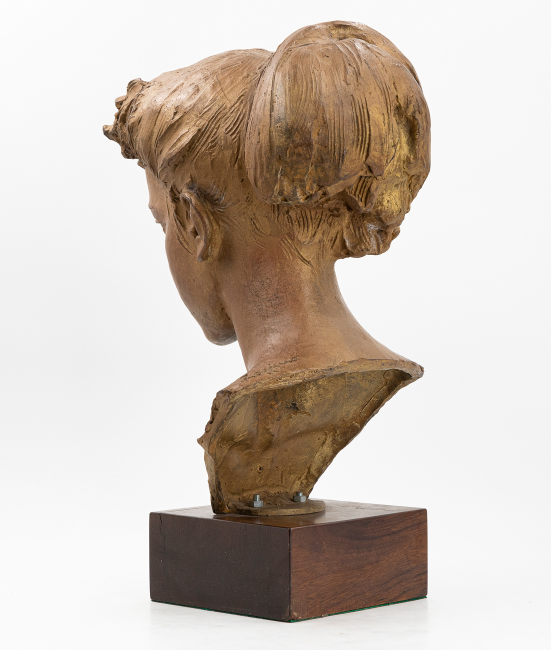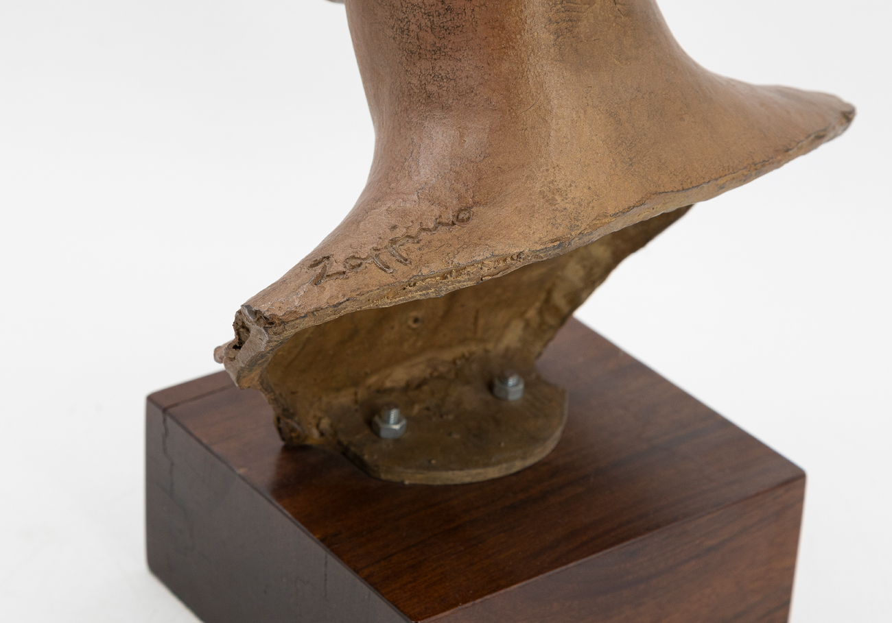 Scultura in bronzo poggiante su base in legno