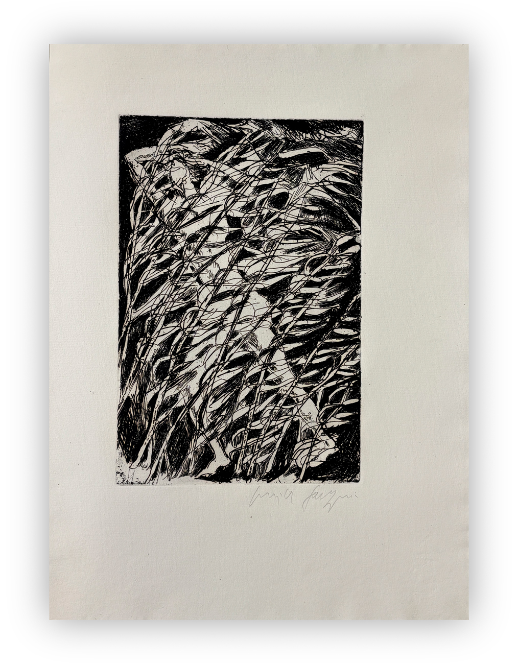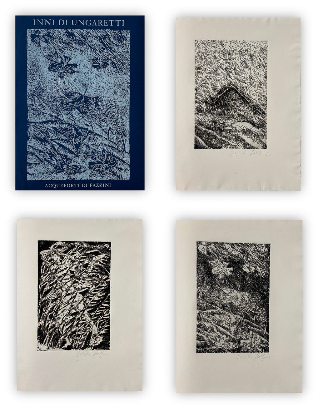 Edizione d'arte, realizzata su carta a tino di Pescia, recante poesie di Ungaretti illustrate da 3 acqueforti di Pericle Fazzini, ciascuna recante firma a matita al fronte