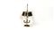 LUCERNA IN METALLO DORATO tre bracci portacandela, paralume in tôle dipinto in oro con motivi vegetali su fondo nei toni del marrone h cm 52 GILDED METAL TABLE LAMP