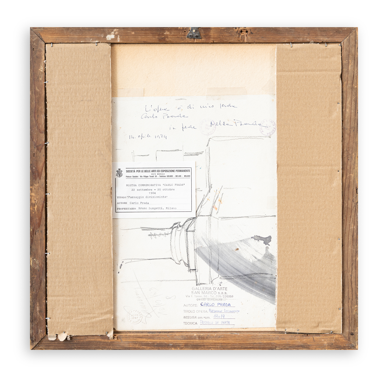 Etichetta della 'Mostra commemorativa Carlo Prada - 1984' al retro