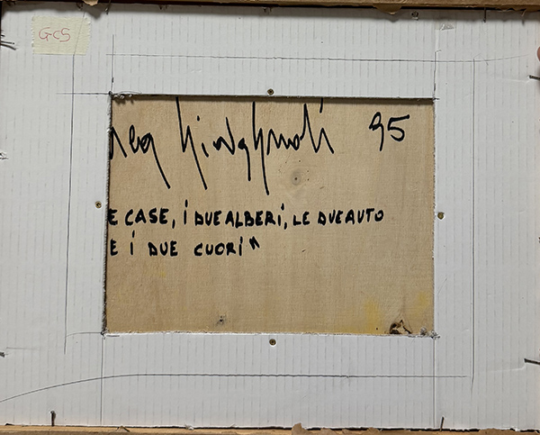 LUCA GIOVAGNOLI, "Le case, i due alberi, le due auto e i due cuori", 1995