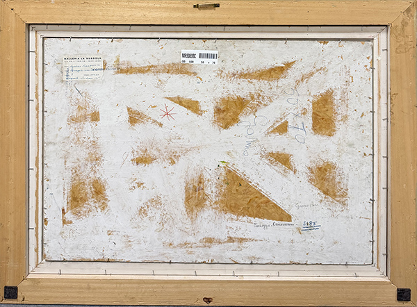 PIERO GARINO, "Paesaggio", 1956, olio su tavola, cm 50x70. Al fronte: firma in basso a destra. Al verso: etichetta "Galleria La Bussola, Torino". Opera accompagnata da certificato di provenienza. Opera con cornice.