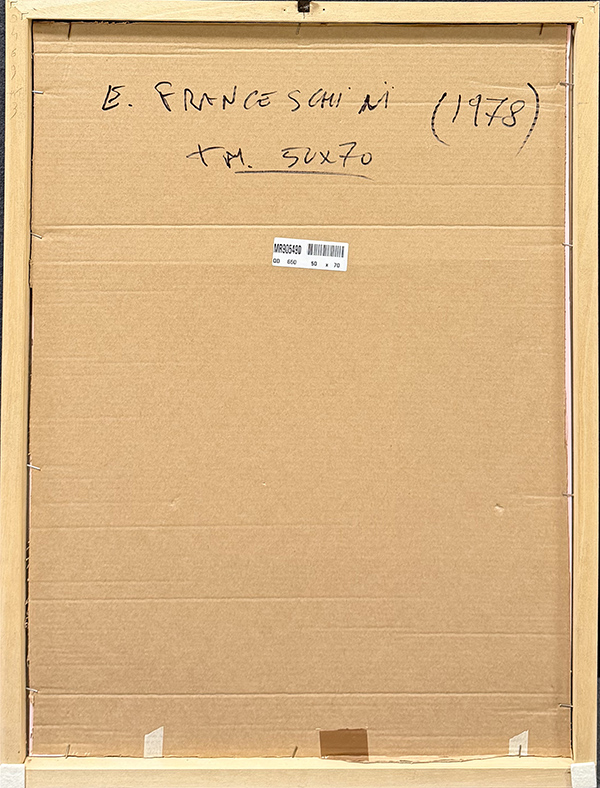 EDOARDO FRANCESCHINI, 1978, tecnica mista su carta, cm 70x50. Al fronte: firma e anno in basso a destra. Al verso: firma, anno, tecnica. Opera accompagnata da certificato di provenienza. Opera con cornice.