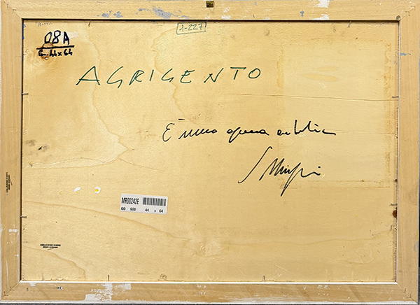 SALVATORE MAGAZZINI, "Agrigento", olio su tavola, cm 44x64. Al fronte: firma in basso a destra. Al verso: titolo, dichiarazione di autenticità da parte dell'artista, firma. Opera accompagnata da certificato di provenienza. Opera con cornice.