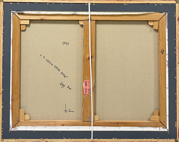 GASTONE BIGGI, "Il vento della rosa", 2000, olio su tela, 75x100. Al verso: titolo, firma, anno. Opera accompagnata da autentica su foto dell'artista. Opera accompagnata da certificato di provenienza. Opera con cornice.