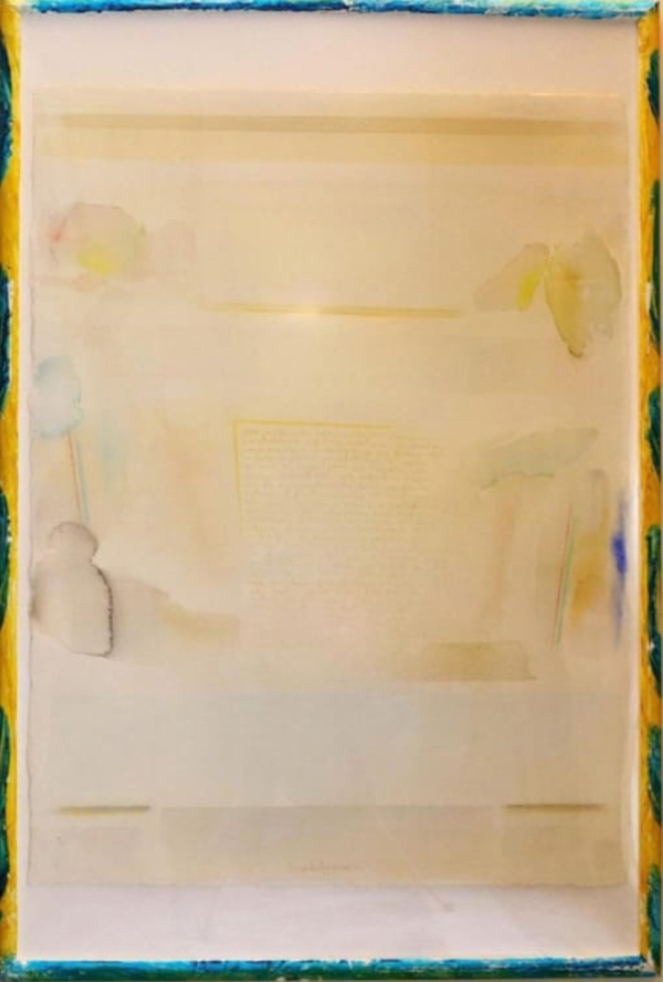 RICCARDO GUARNERI, Senza titolo, acquerelli su carta a mano, cm 77x57. Al fronte: firma in basso centrale. Opera con cornice in omaggio, accompagnata da autentica su foto dell'artista. Opera accompagnata da certificato di provenienza della nostra galleria Daliano Ribani Arte