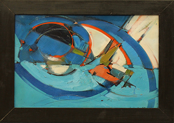 SANDRO ANGELOTTI, 1980, olio su tela, cm 47x70, con cornice 60x82x2,5 cm, 2 kg. Al fronte: firma e anno in basso a destra. Opera con certificato di provenienza della Daliano Ribani Arte. Opera con cornice in omaggio.