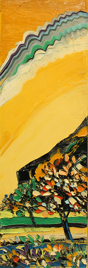 NELU PASCU, anni 2000, olio su tela, 60x20x3 cm, peso 0,60 kg. Al fronte: firma in basso a destra. Autentica su foto dell'artista. Opera con certificato di provenienza della Daliano Ribani Arte. Opera senza cornice.