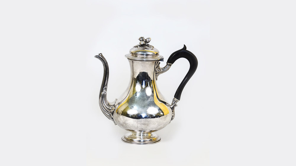 CAFFETTIERA IN ARGENTO Parigi, metà del XIX secolo manico in legno...