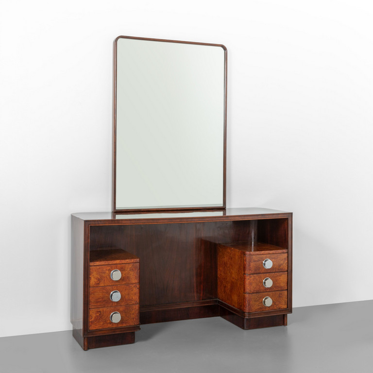 Legno di mogano radica di tuia ottone cromato cristallo argentato.