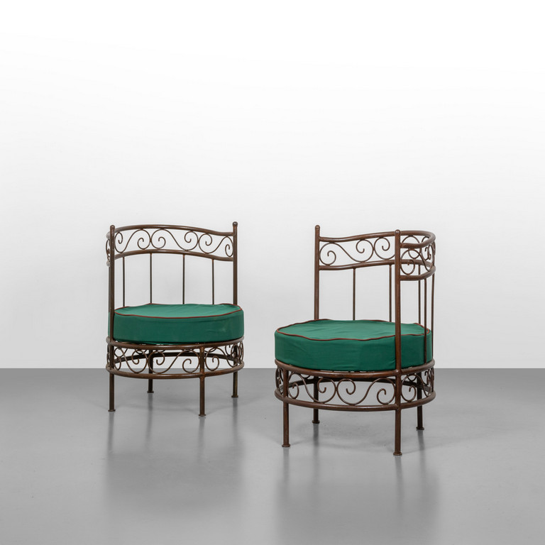 Strutture in tondino e tubolare di acciaio verniciato cuscini rivestiti in tessuto.