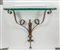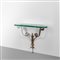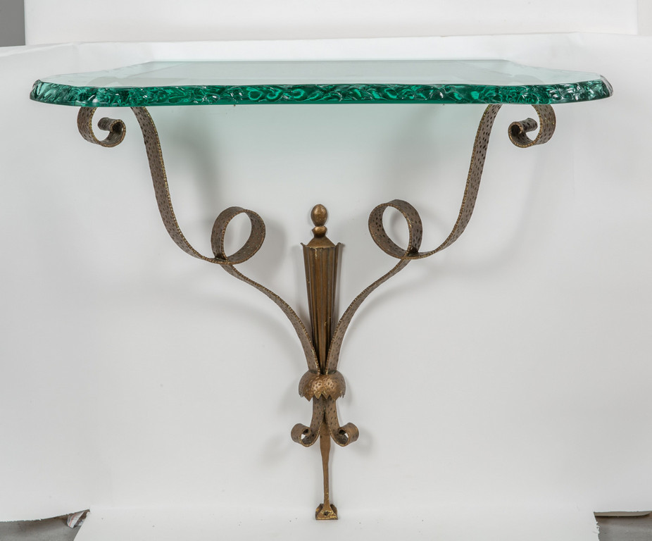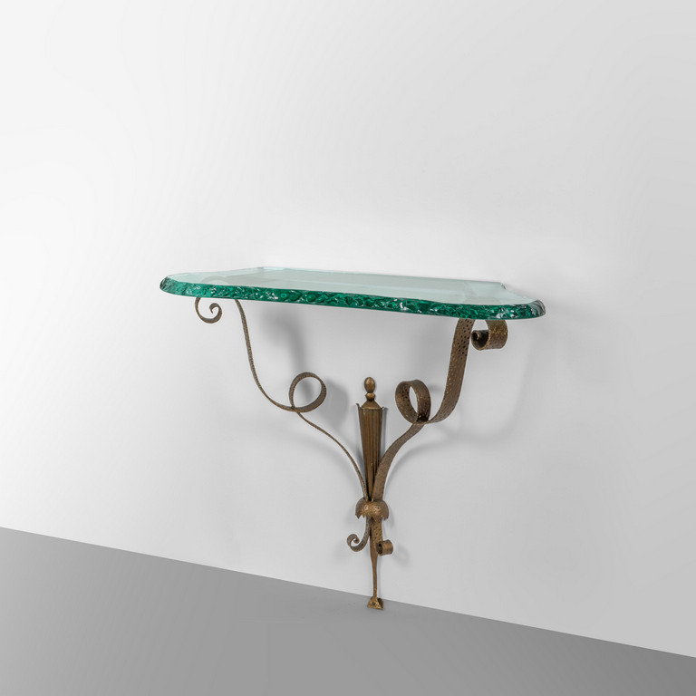 Ferro battuto forgiato e dorato cristallo di forte spessore sagomato e scalpellato sui bordi.