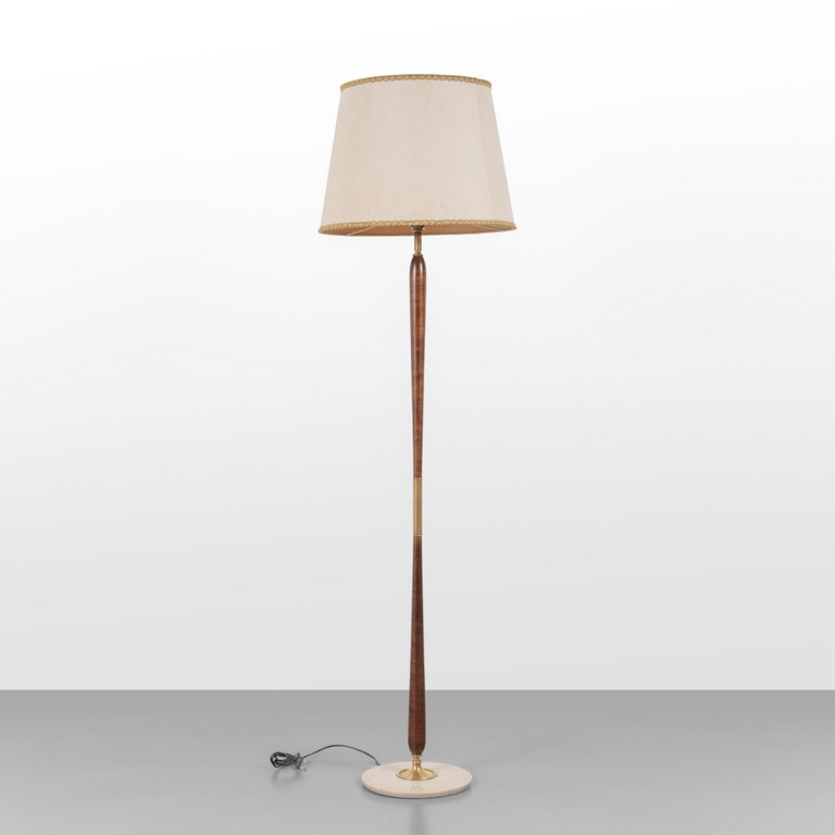 Marmo legno di mogano ottone paralume in tessuto plastificato.