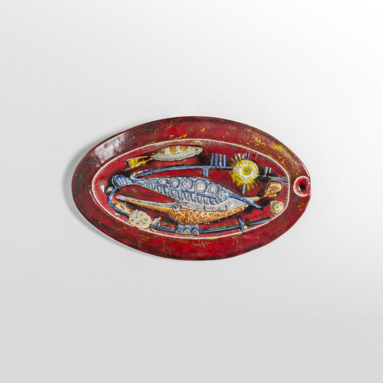 Un piatto ovale con pesci.