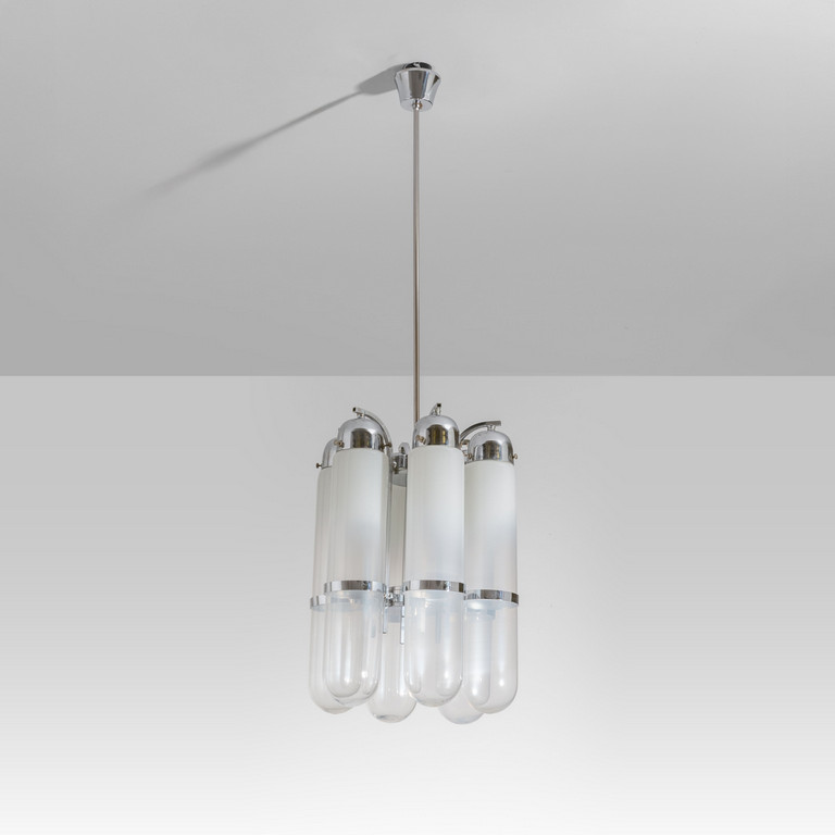 Diffusori in vetro sfumato bianco acciaio cromato.