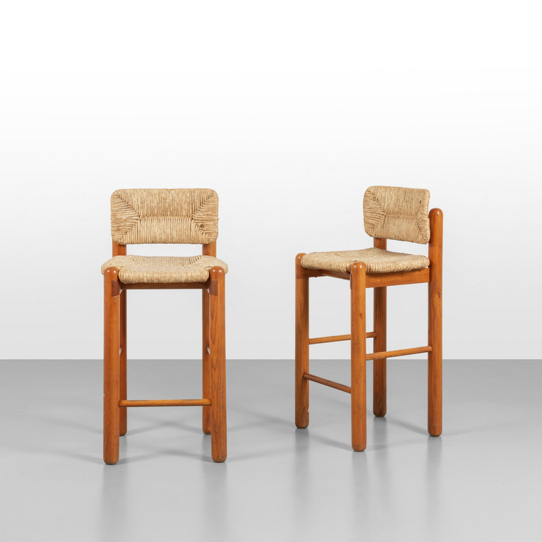 Legno di rovere sedute e schienali in paglia intrecciata.