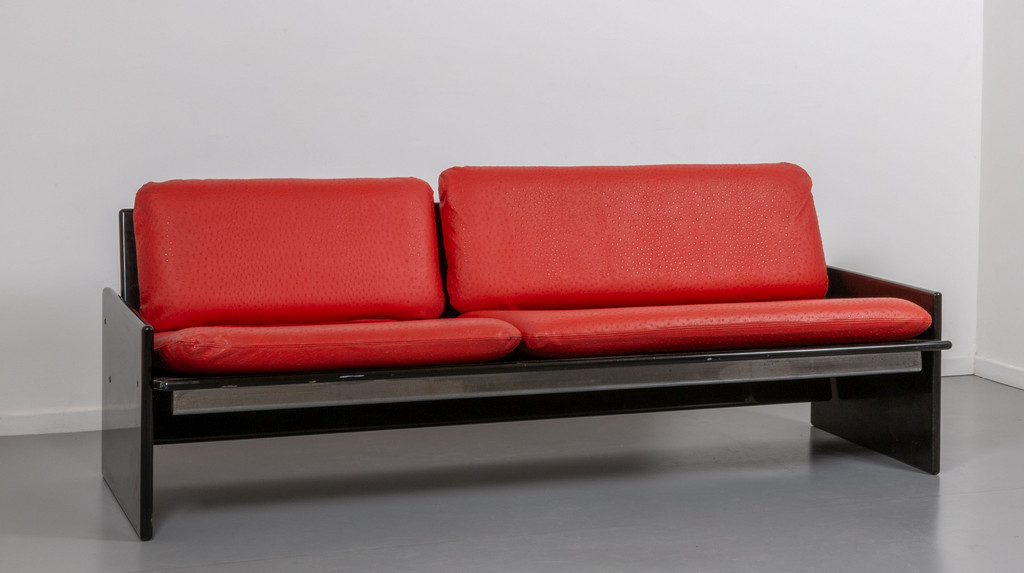 Legno laccato cuscini rivestiti in vinilpelle.