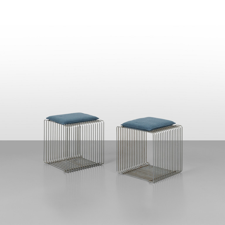 Tondino di acciaio cromato cuscini rivestiti in tessuto.
