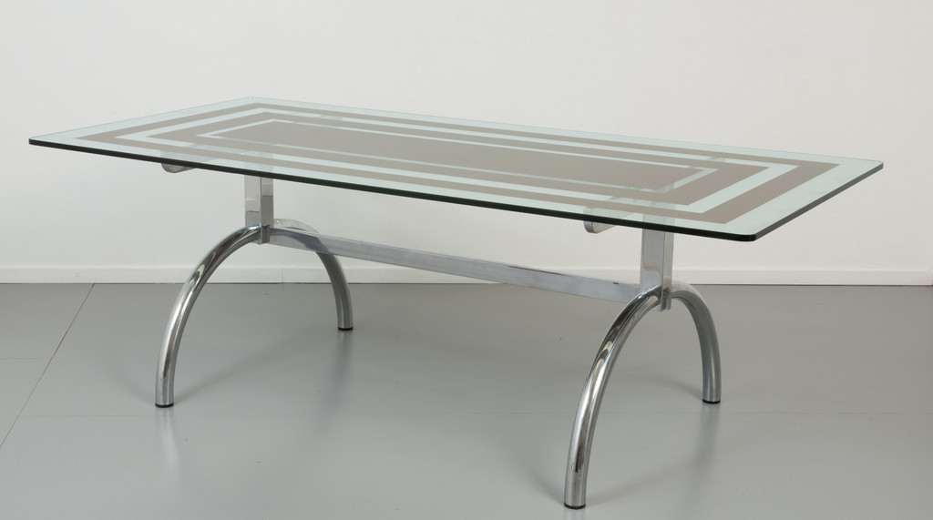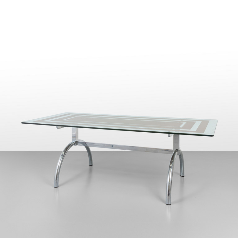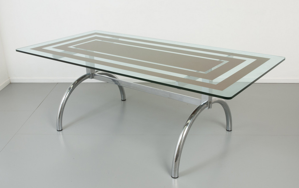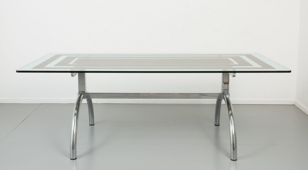 Acciaio cromato cristallo parzialmente retrodipinto con motivo geometrico.