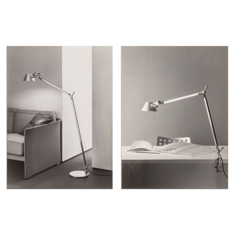 Due stampe fotografiche raffiguranti la lampada 'Tolomeo' morsetto e da lettura di De Lucchi-Fassina per Artemide.
