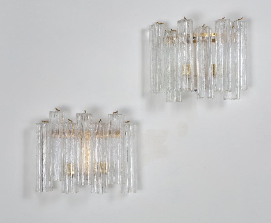Pendenti in vetro corteccia trasparente strutture in ottone.