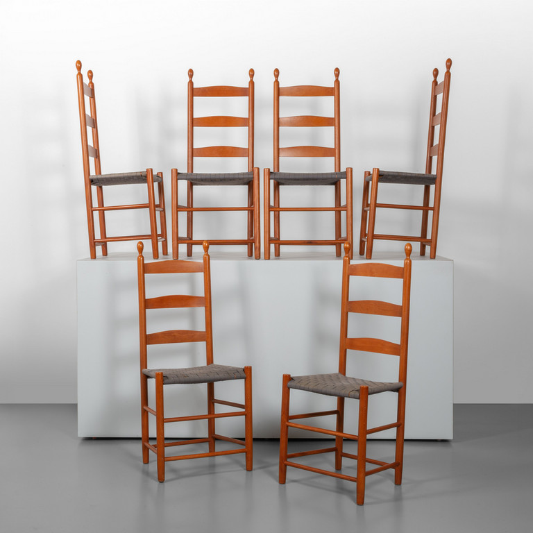 Legno di ciliegio sedute in cinghie di canapa intrecciata.