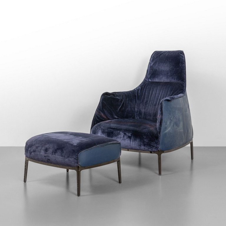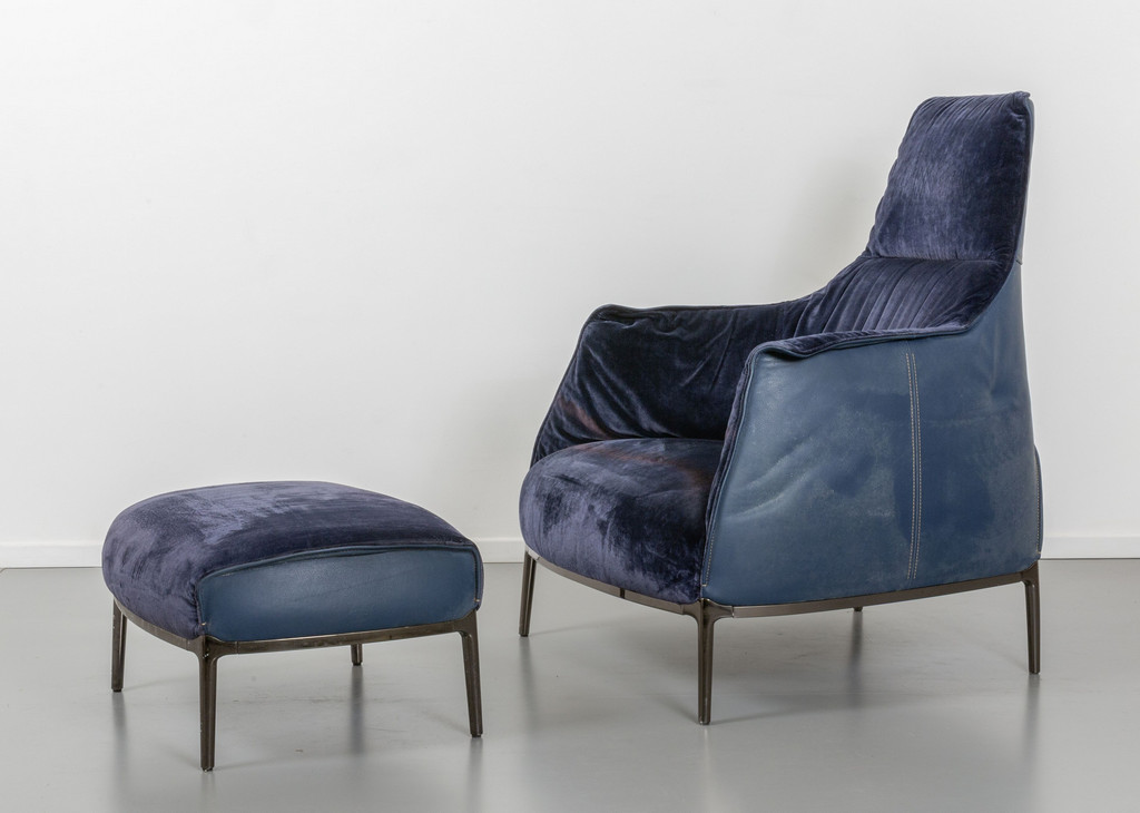 Una poltrona 'Archibald A' ed un poggiapiedi.