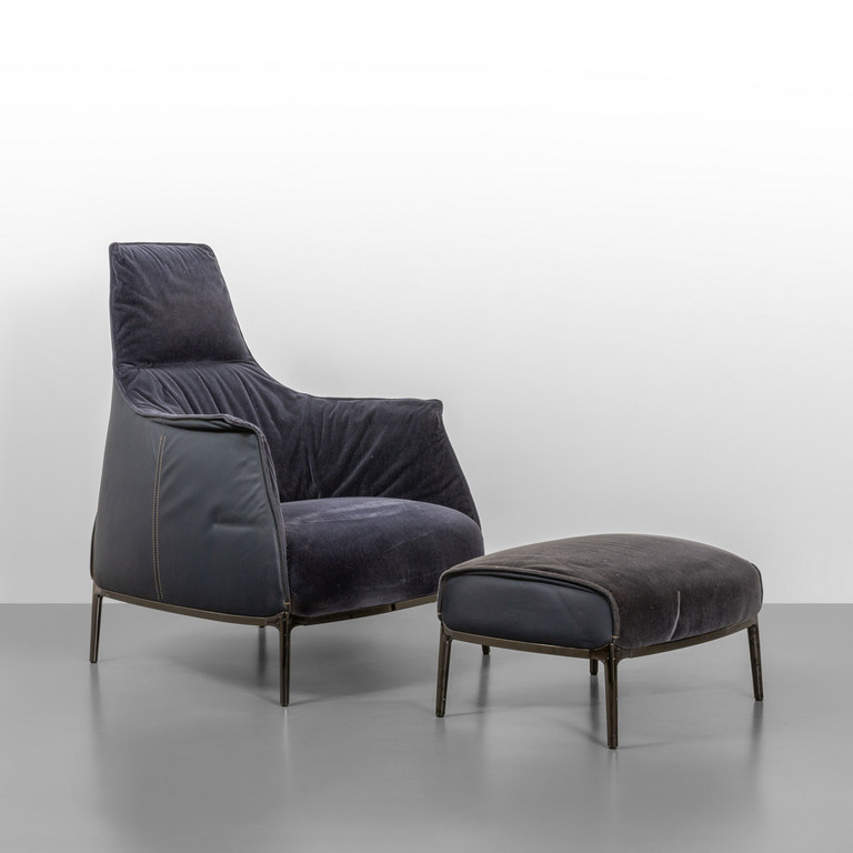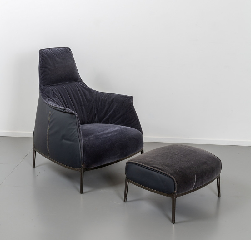 Una poltrona 'Archibald A' ed un poggiapiedi.