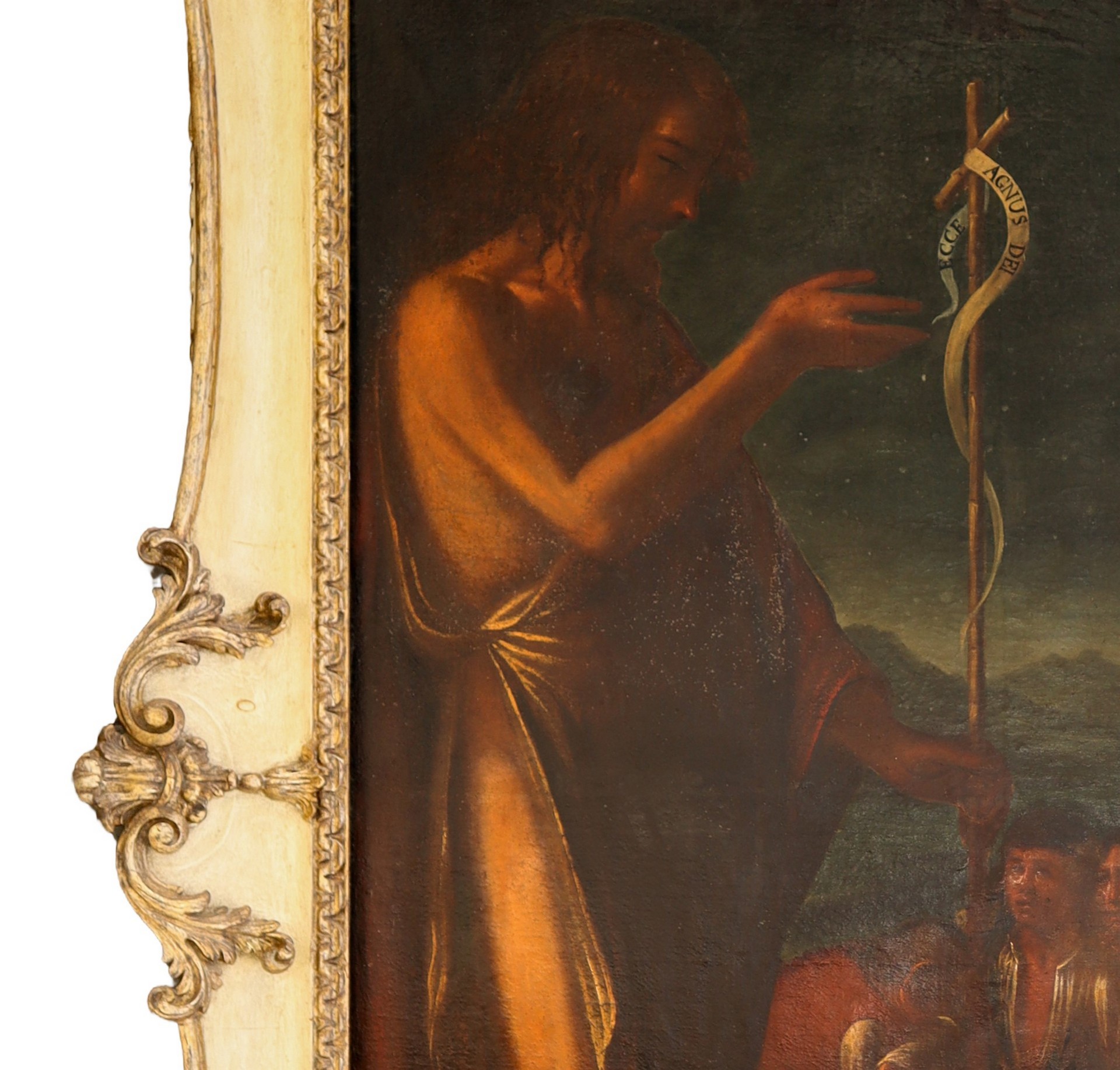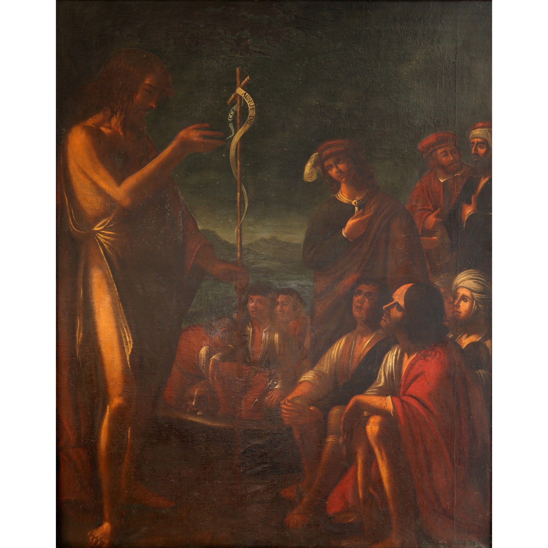 Agostino Scilla (Messina 1629 - Roma 1700) - San Giovanni Battista che predica alle folle, 17° secolo H cm 204x161- in cornice H cm 268x203 Olio su tela