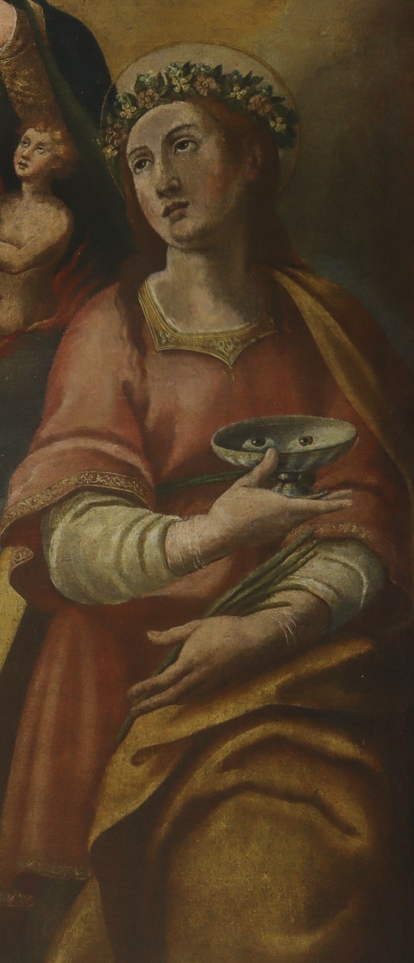 Madonna con Bambino, Santa Lucia e San Domenico, Painter of the fine 17° secolo H cm 200x131 Olio su tela