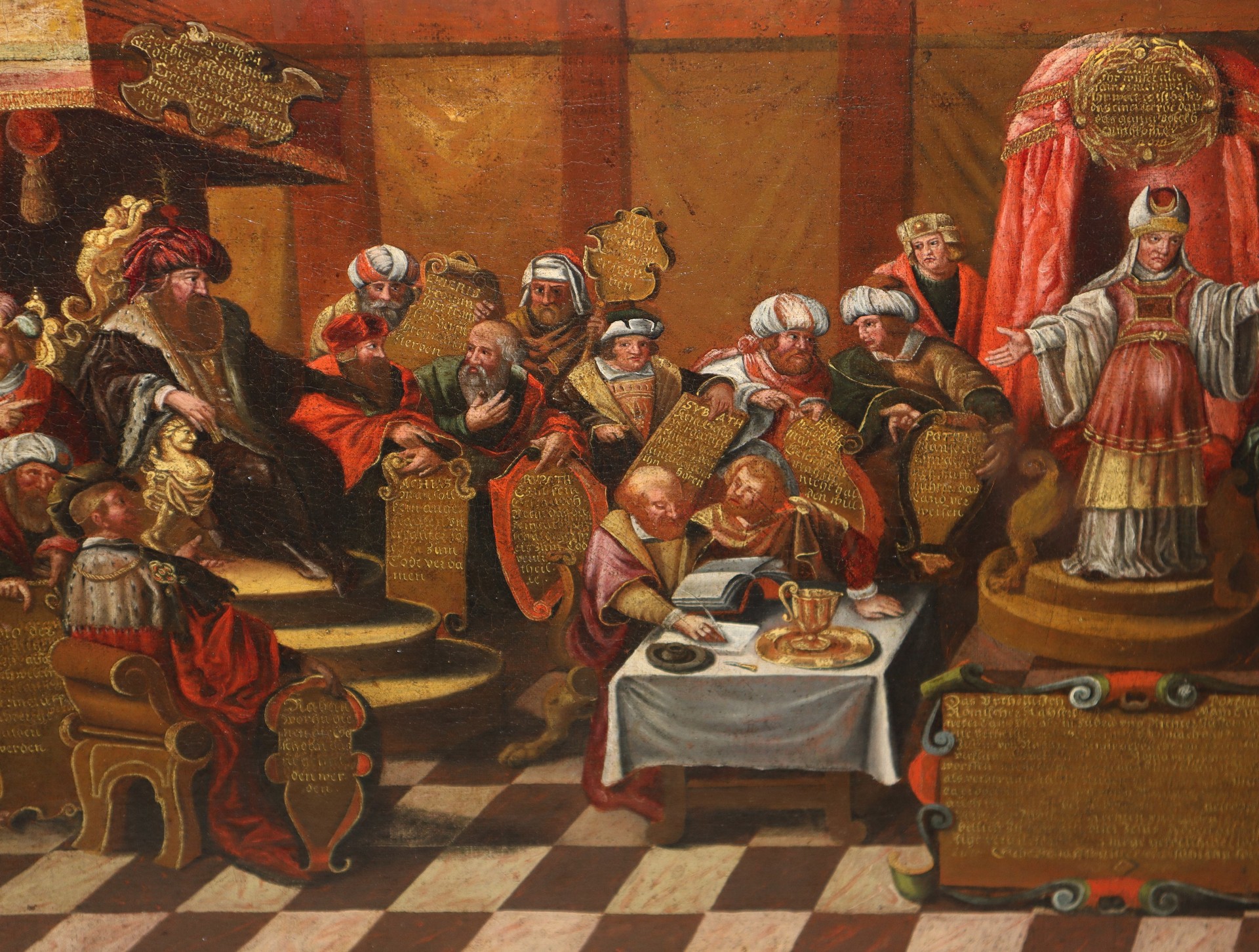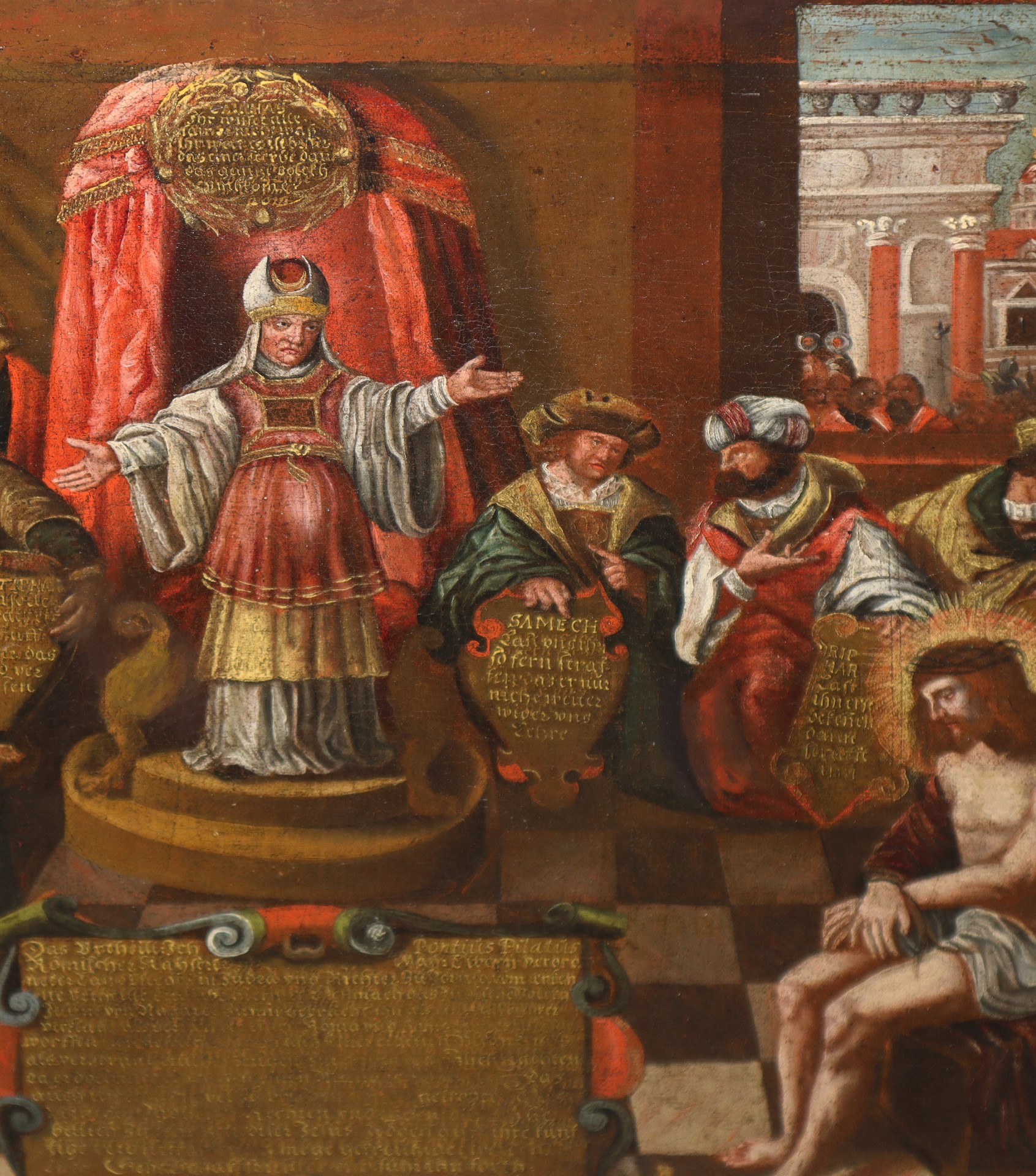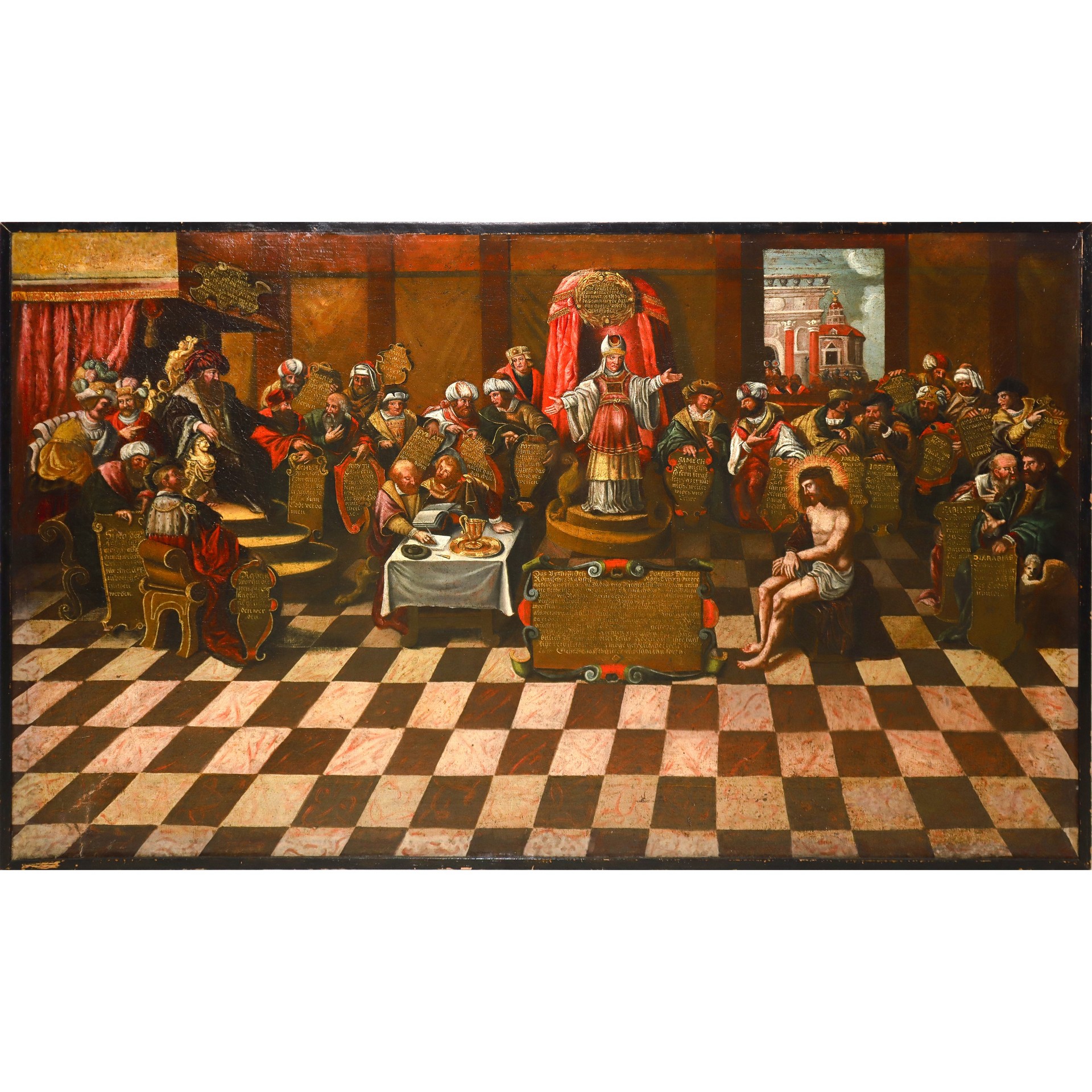 Biagio Betti (1535 - 1605) - Gesù processato davanti al sinedrio cm 66 x106 Olio su tela