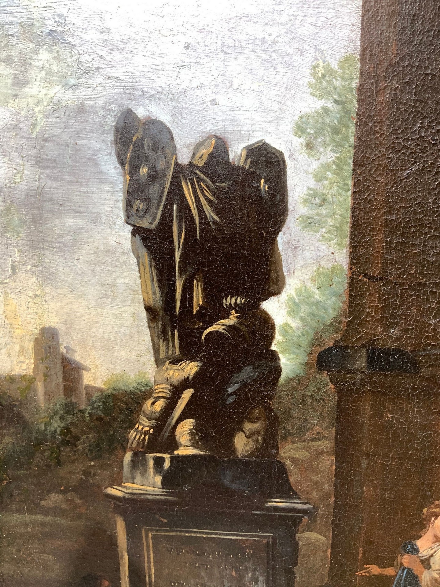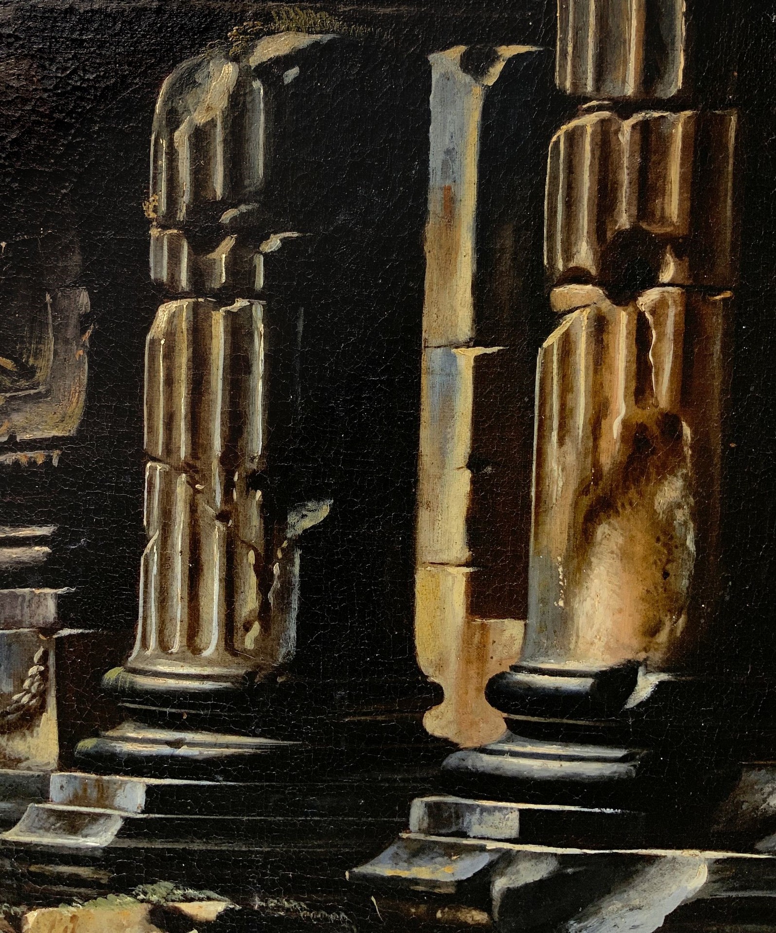 Francesco Maglioli (Napoli XVII secolo) - Capriccio architettonico, 17° secolo cm 130X94 in cornice cm 161 x 125,5 Dipinto ad olio su tela