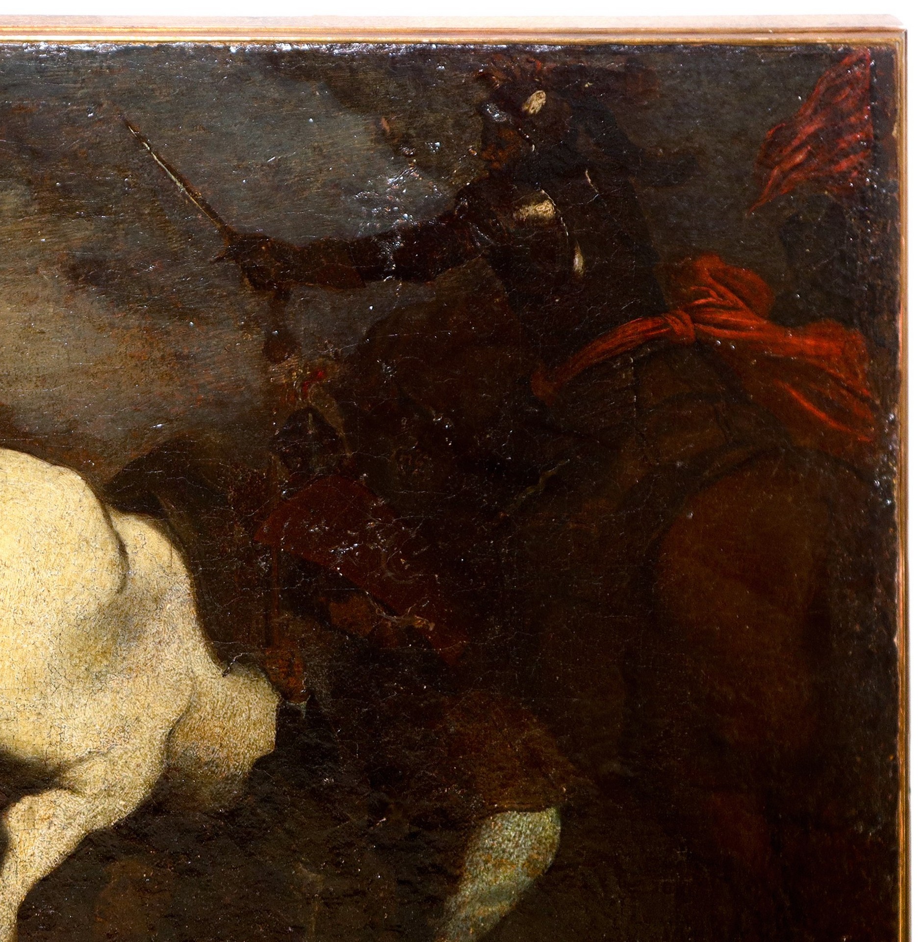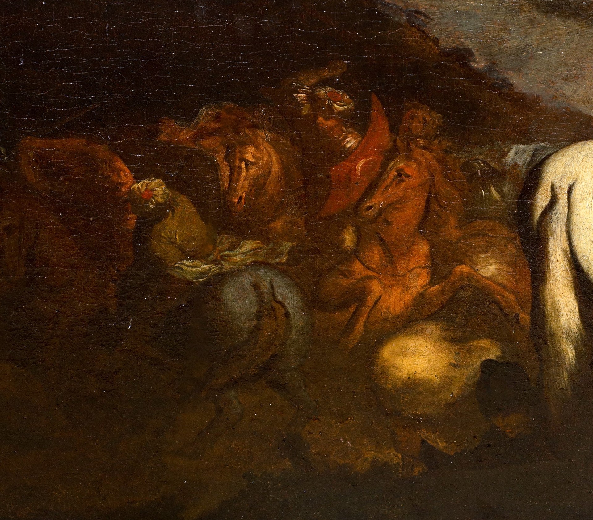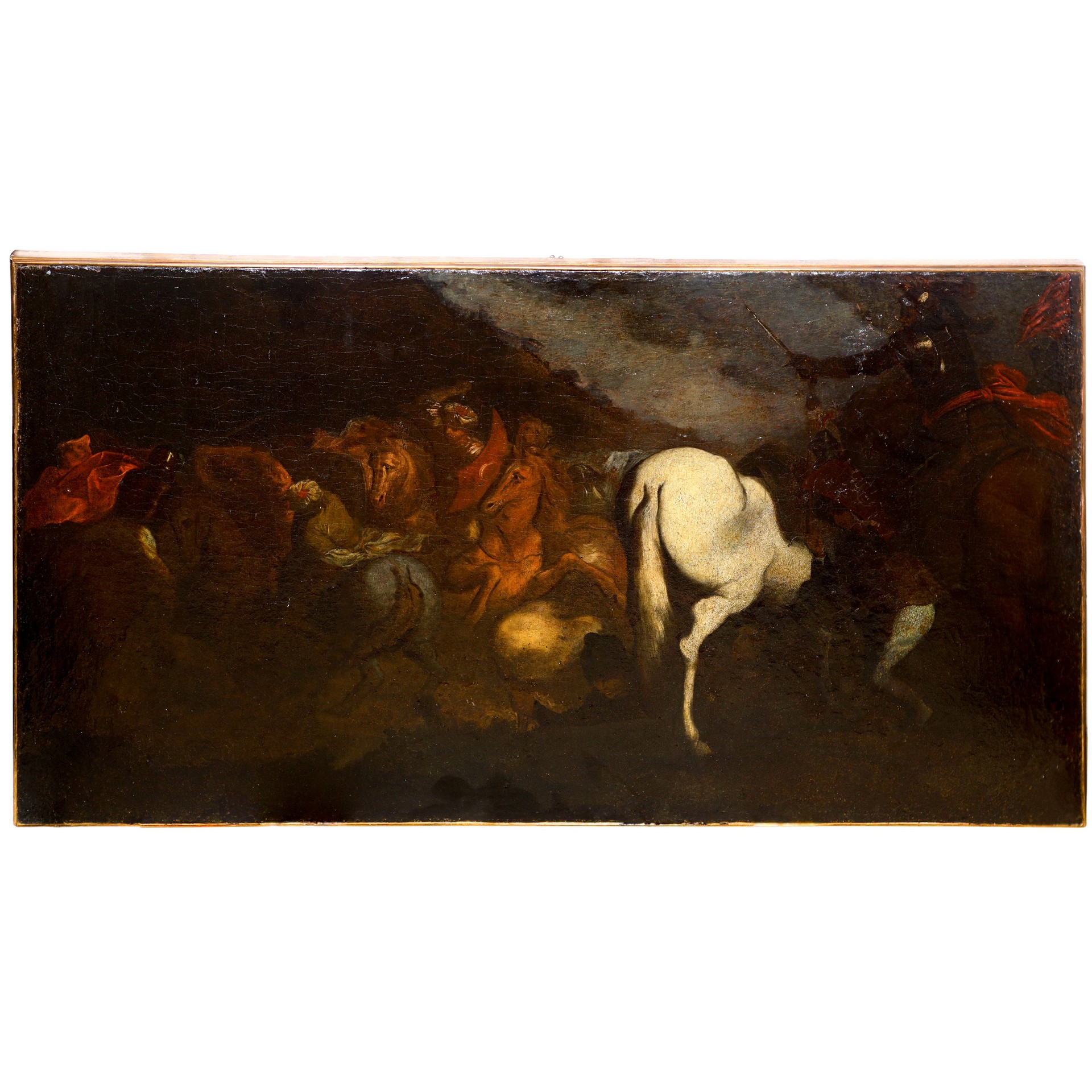 Scena di battaglia tra cavalieri, 18° secolo Cm 55x102 Cadute di colore.