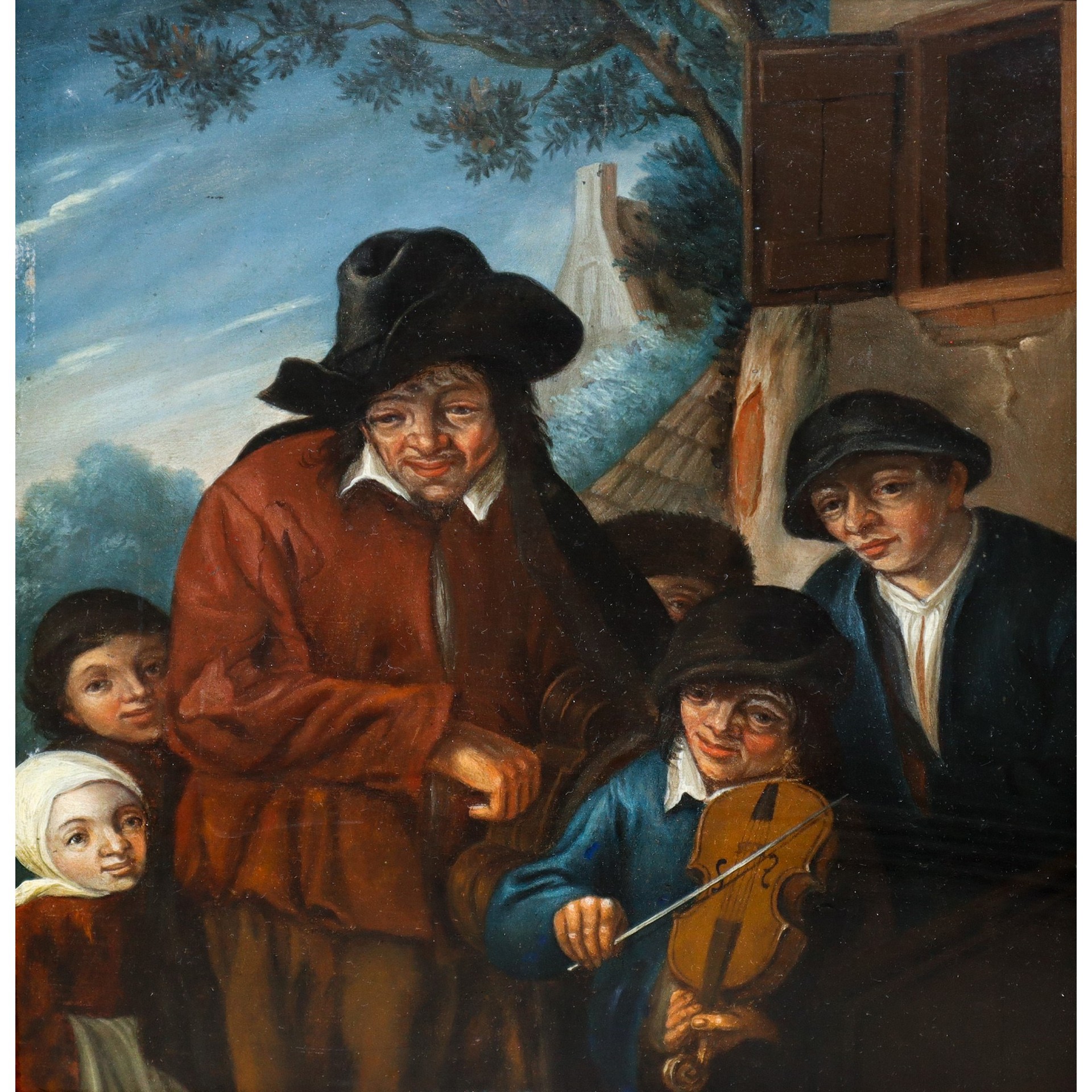 Musicanti, 18th-secolo Flemish painter h cm 28,2X25 in cornice h cm 47X44 olio su tavola