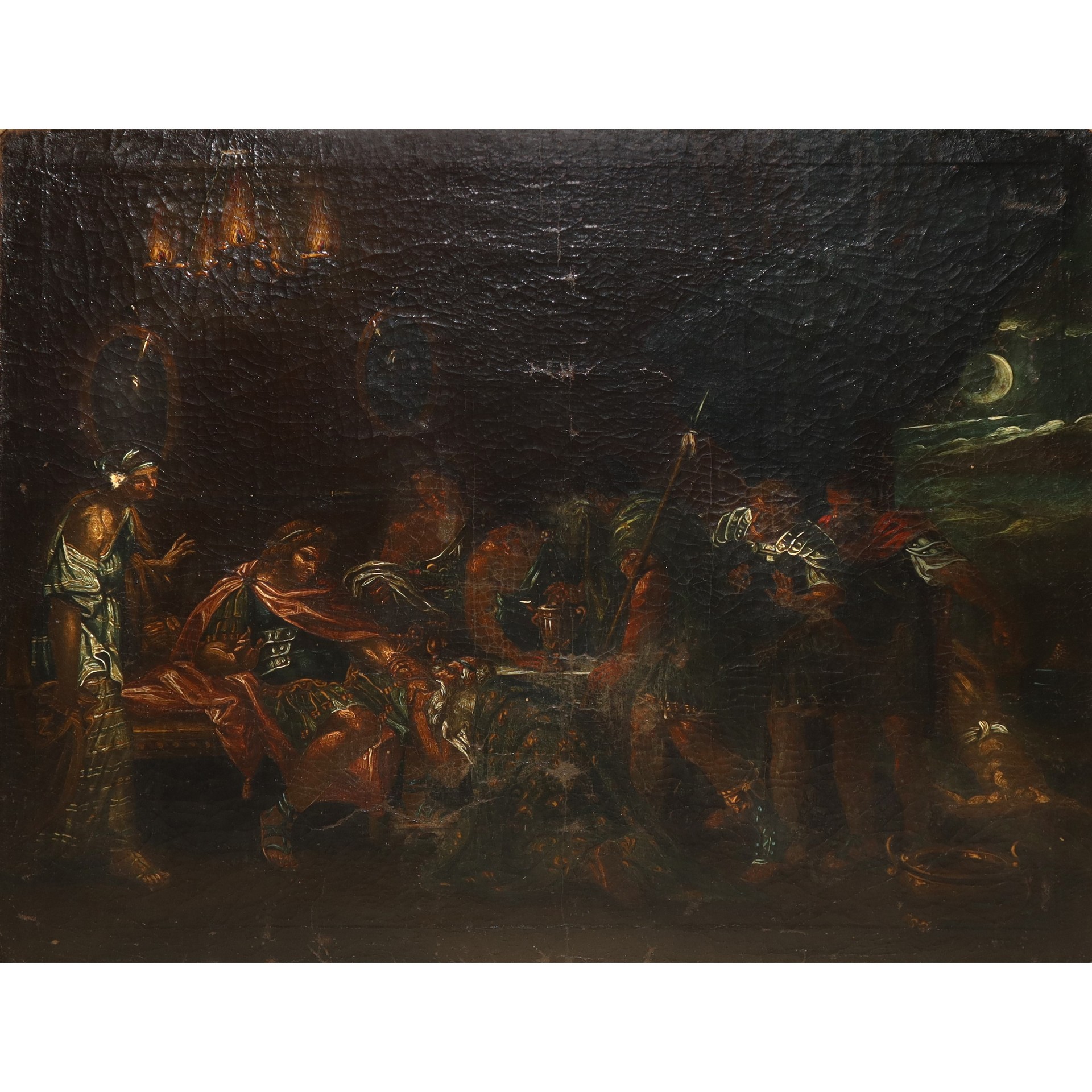 Priamo implora Achille per il corpo di Ettore, fine 18° secolo primi 19° secolo h cm 43x53 in cornice h cm 58,5x68,5 Il dipinto, un conosciuto episodio dell'Iliade, è la trasposizione in formato ridotto di un dipinto di Gavin Hamilton dipinto entro il 1775. Il pittore, certamente di scuola italiana, deve aver conosciuto la composizione tramite incisioni immediatamente circolanti al completamento dell'invenzione originale.