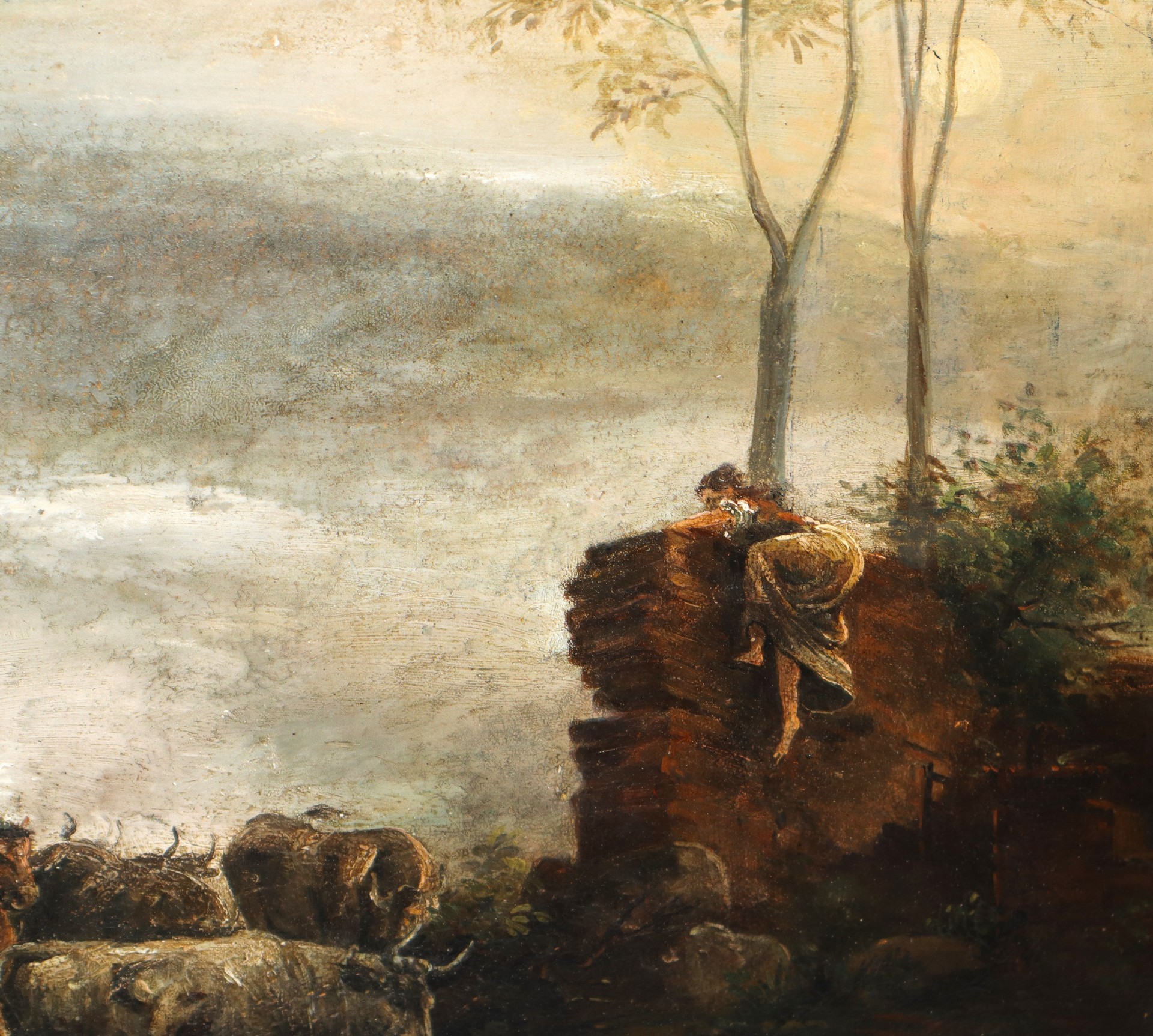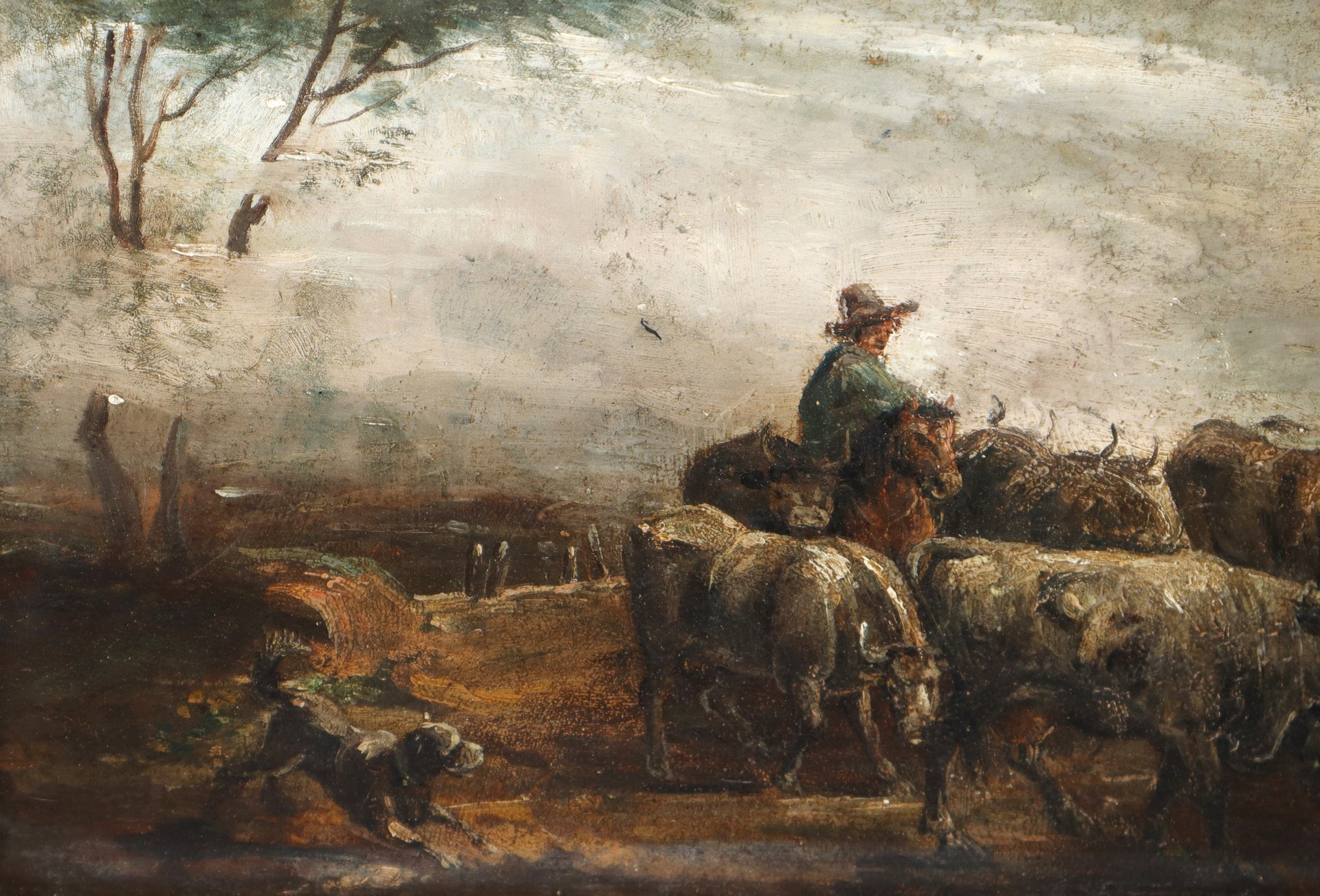 Bovaro con tori, fine 19th/20° secolo h cm 29X42 in cornice h cm 47X60 olio su tavola