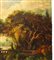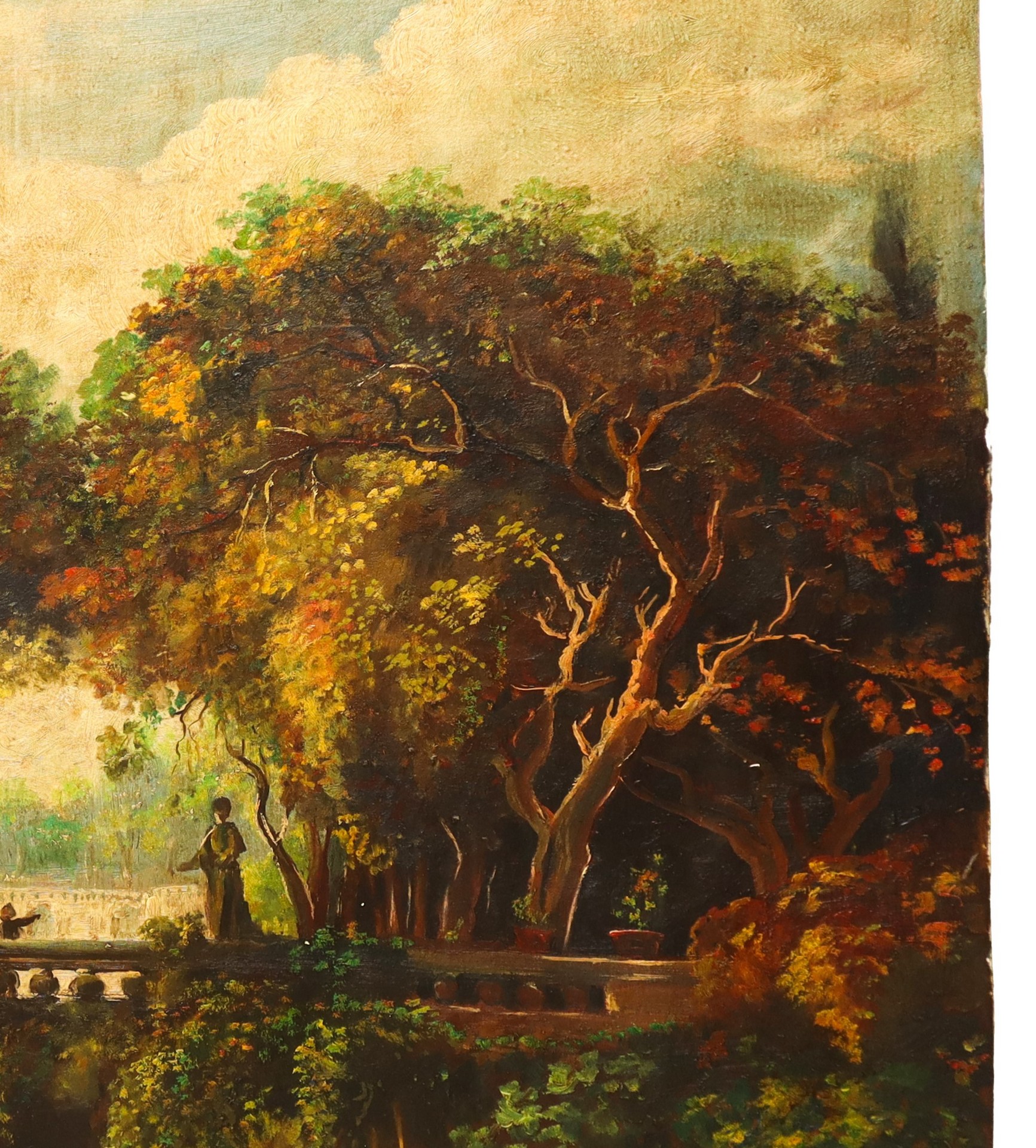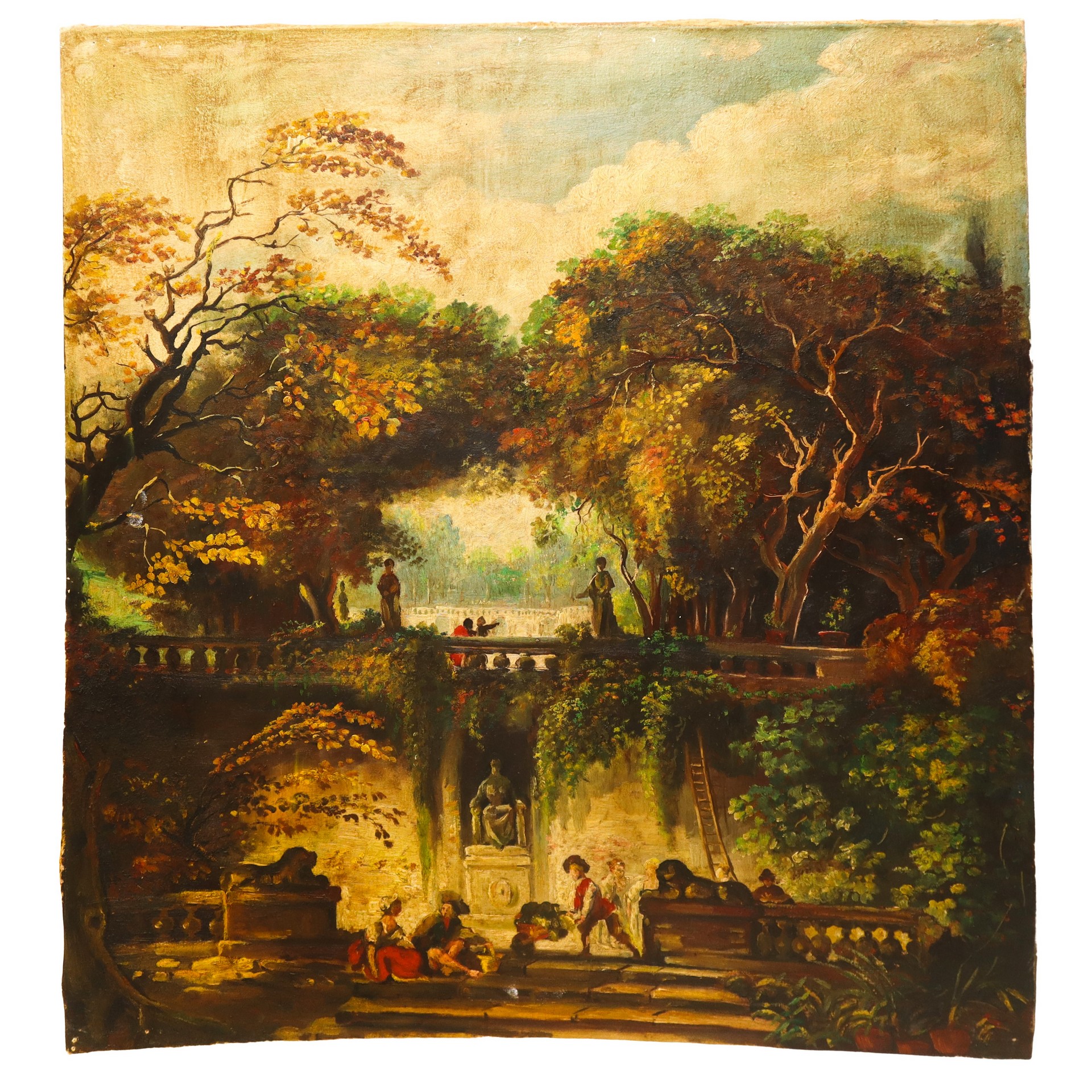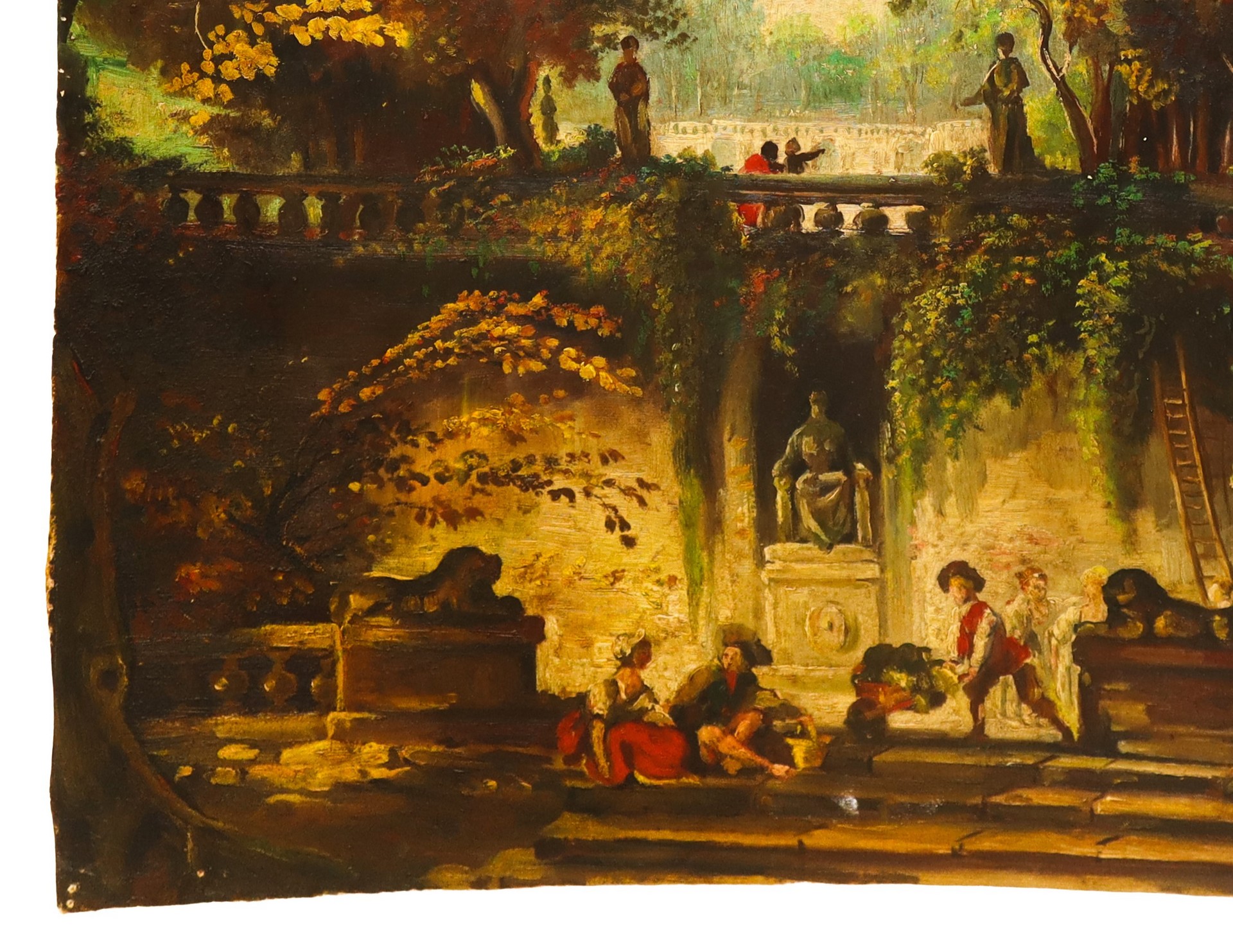 Lotto 89 | Scena idilliaca in un giardino con personaggi, pannello in legno