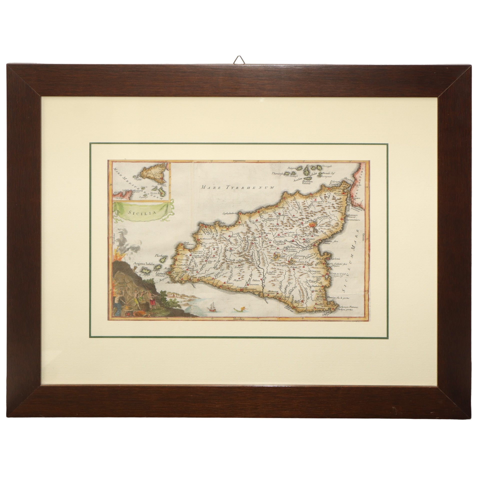 Isaac Basire (1704 - 1768) - Sicilia, mappa, 18° secolo mm 200X305 in cornice di rovere h cm 43X54