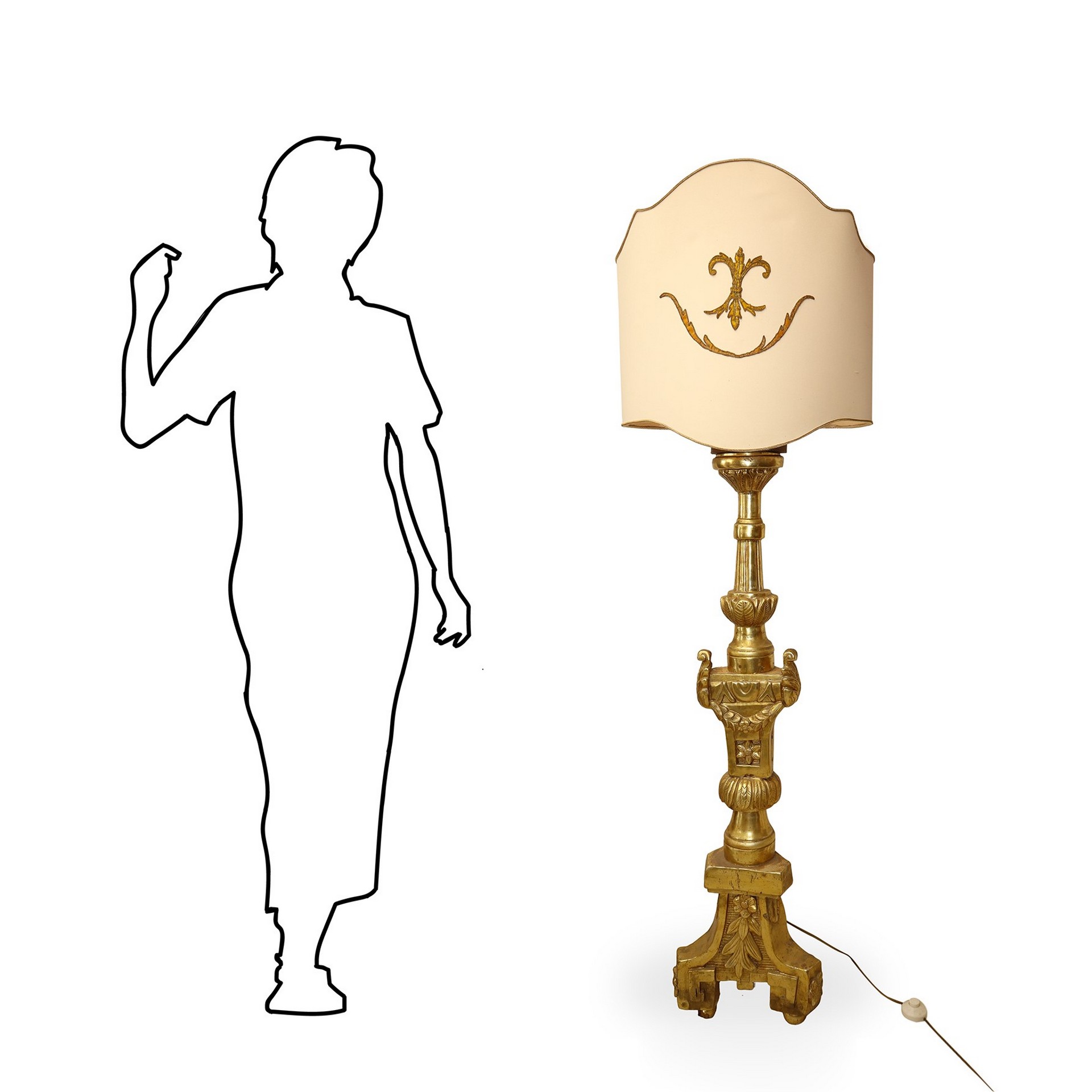 Grande Candeliere in legno dorato, Empire, 19° secolo