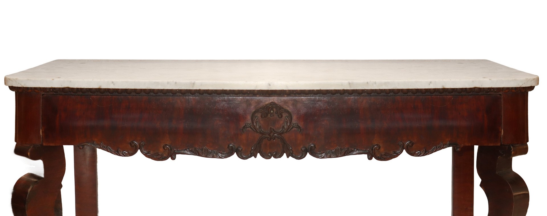 Lotto 134 | Consolle in legno di mogano con marmo bianco al piano