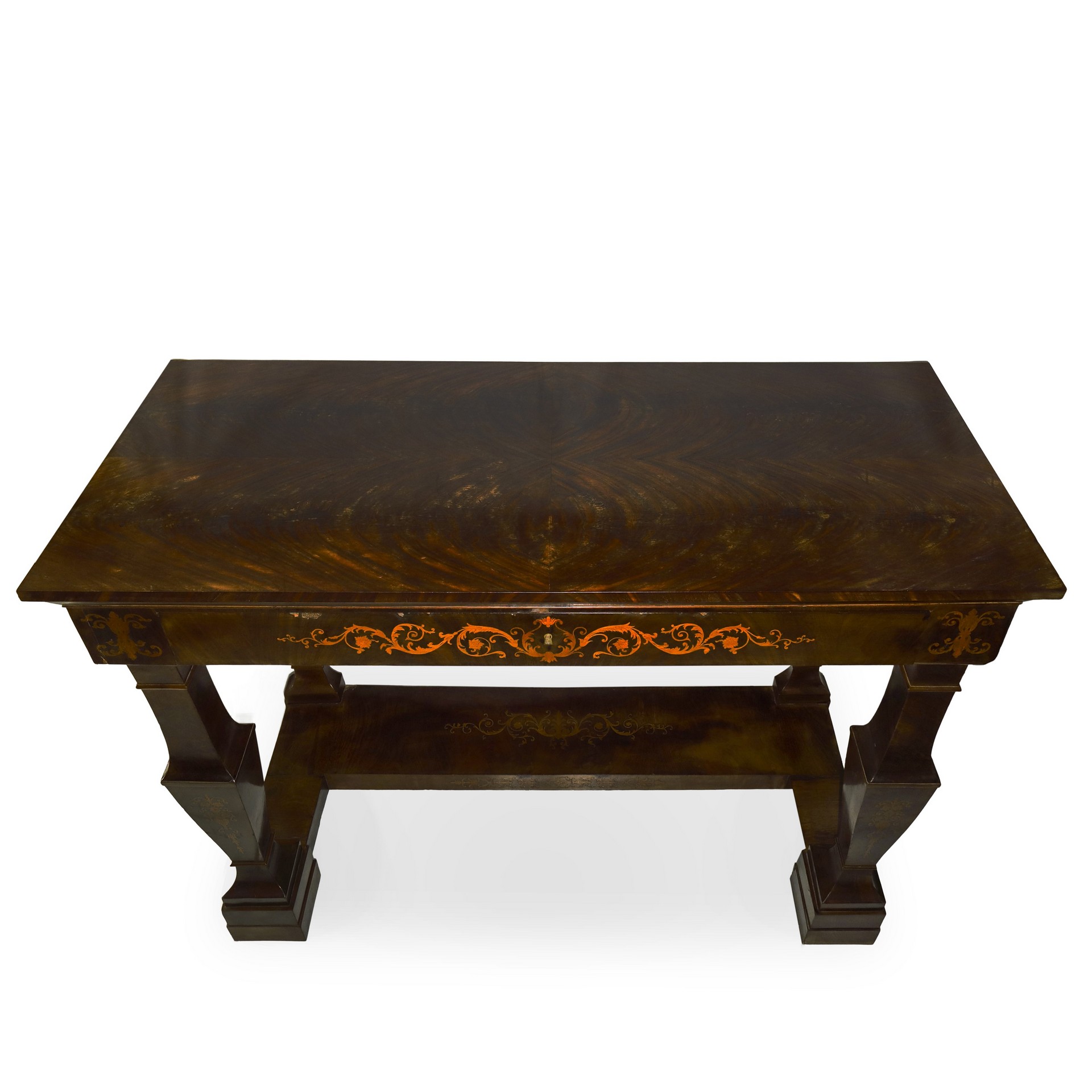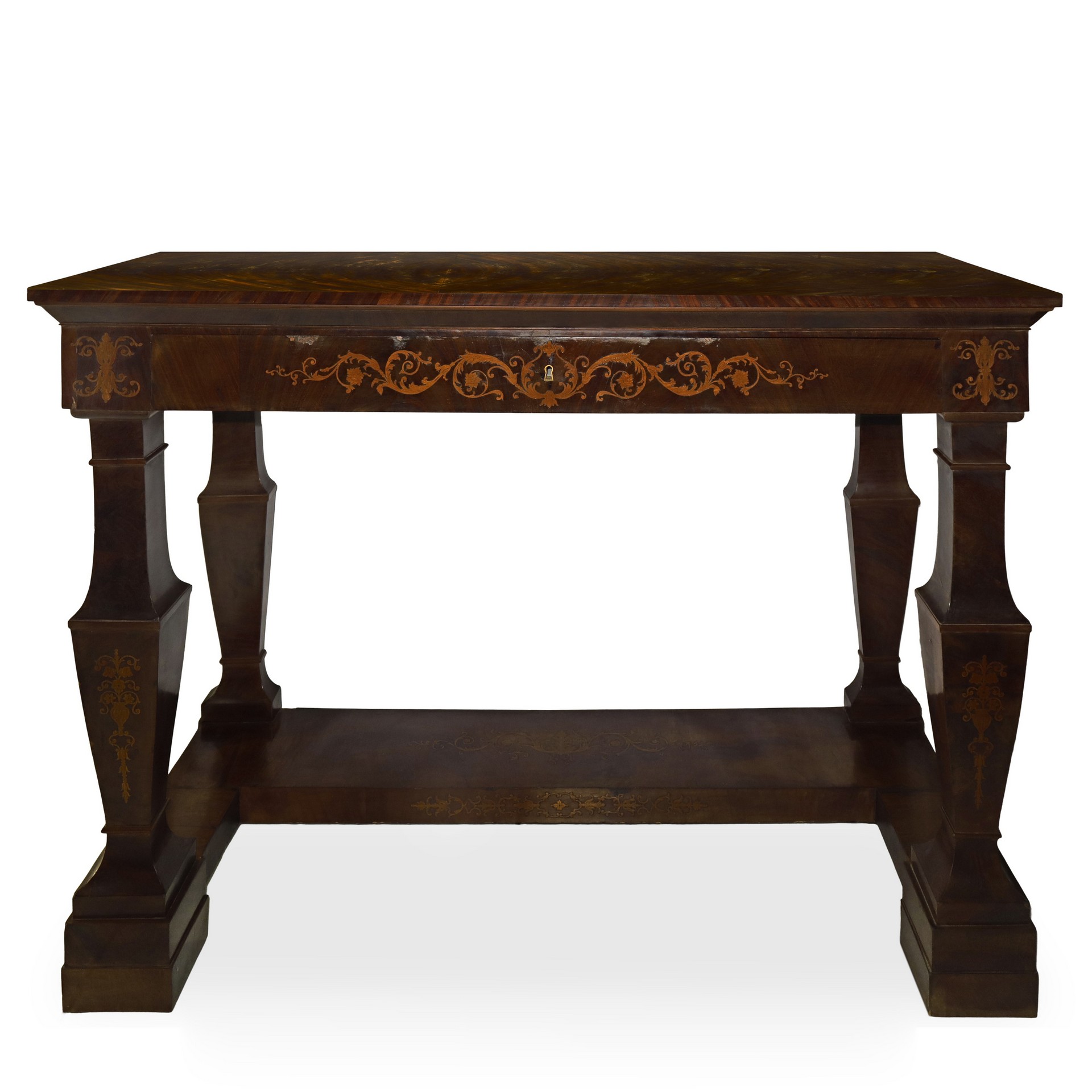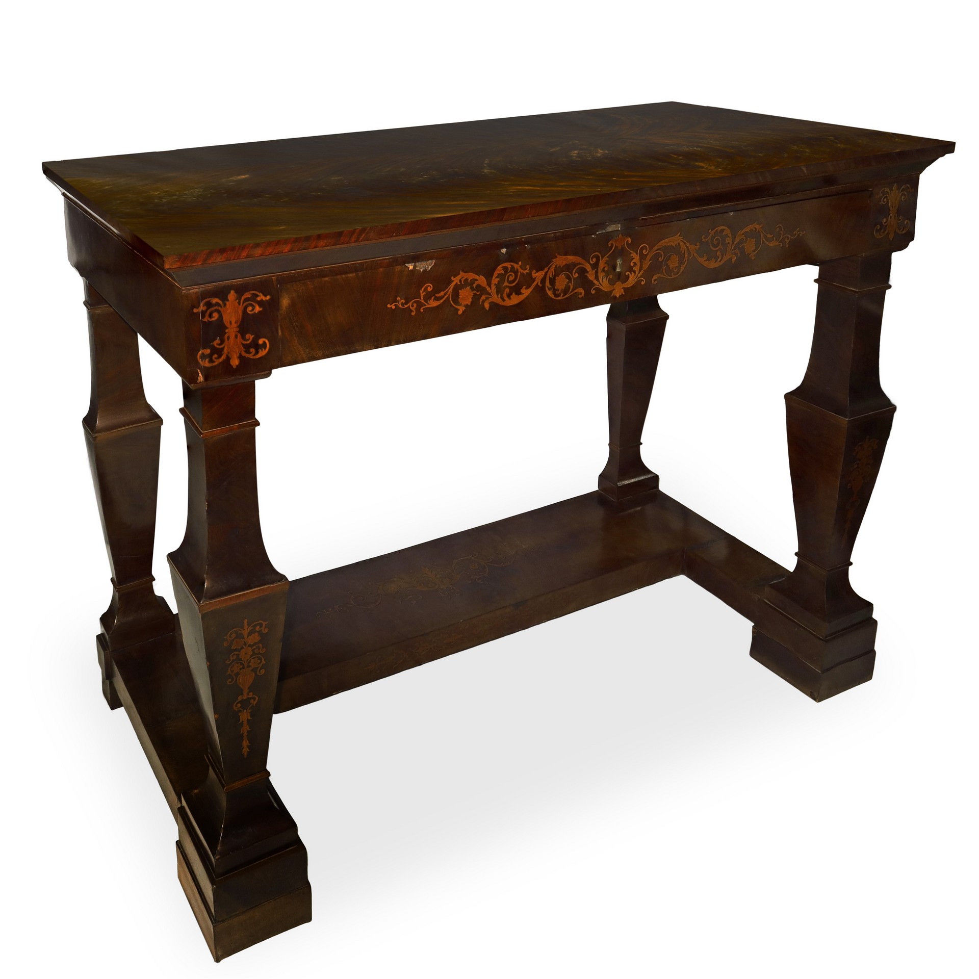Consolle con intarsi floreali in legni chiari