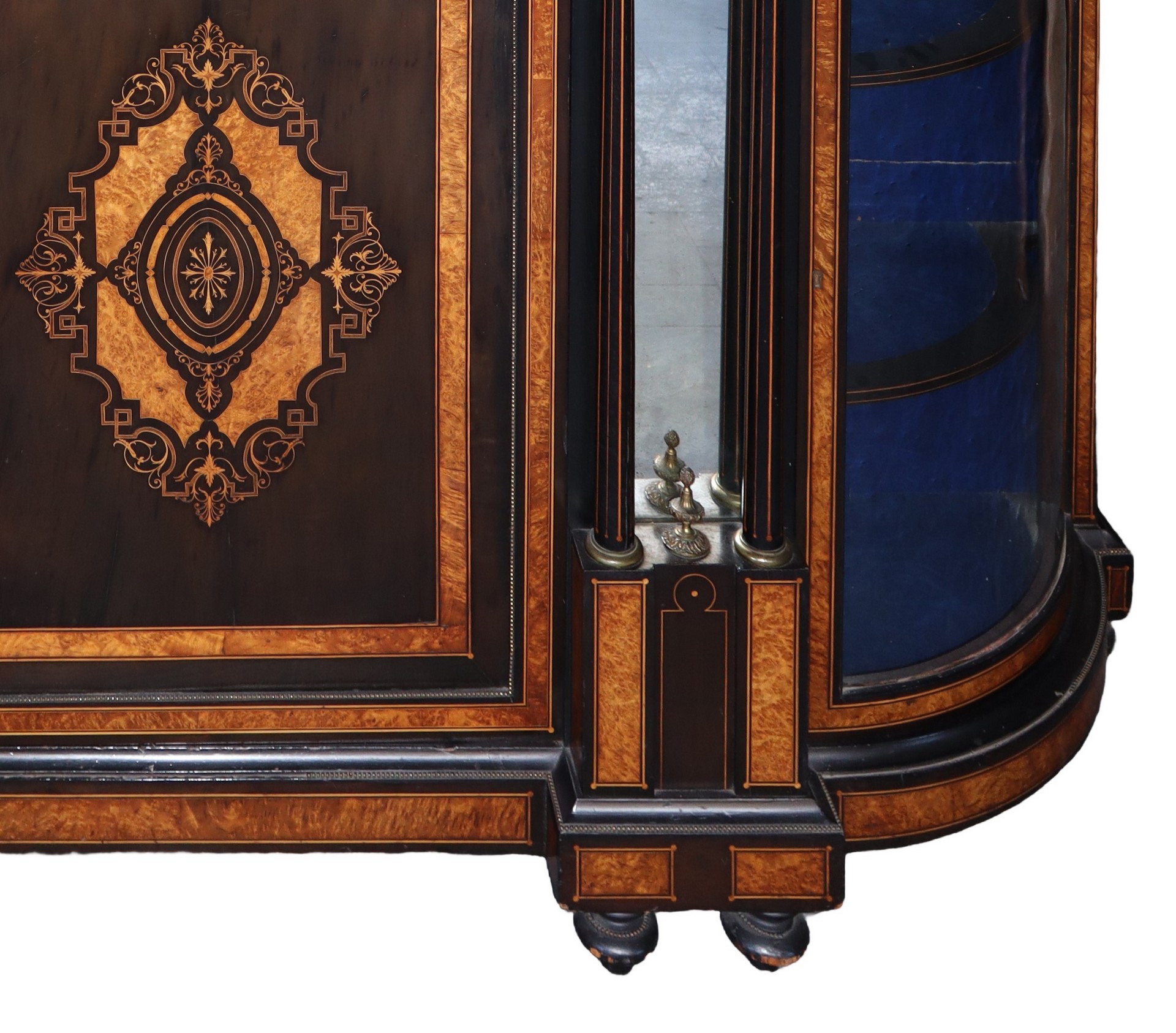 Etagere con sportello centrale intarsiato. Laterali a vetri, fine 19° secolo