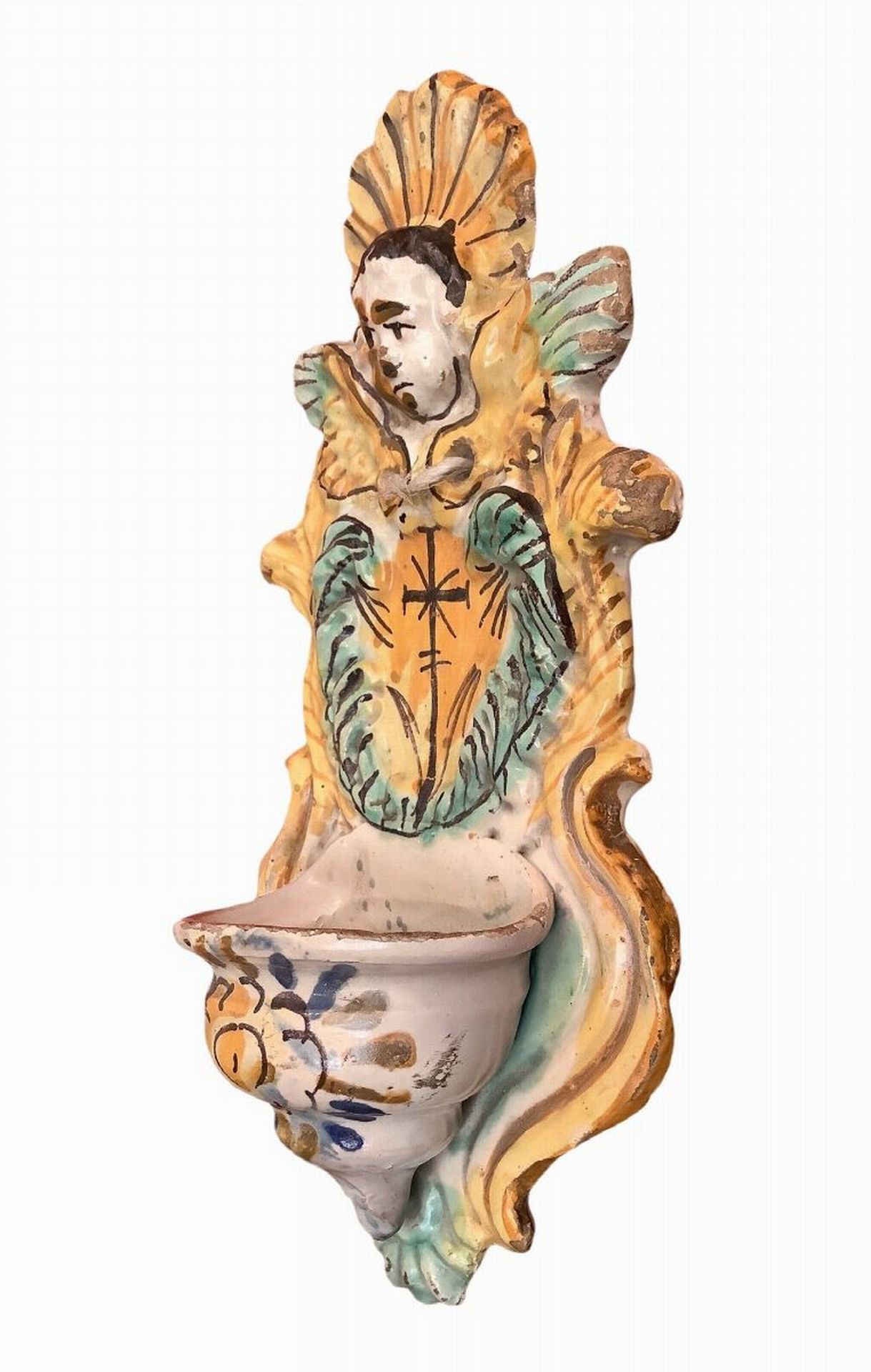 Lotto 166 | Acquasantiera in maiolica arianese, 19° secolo